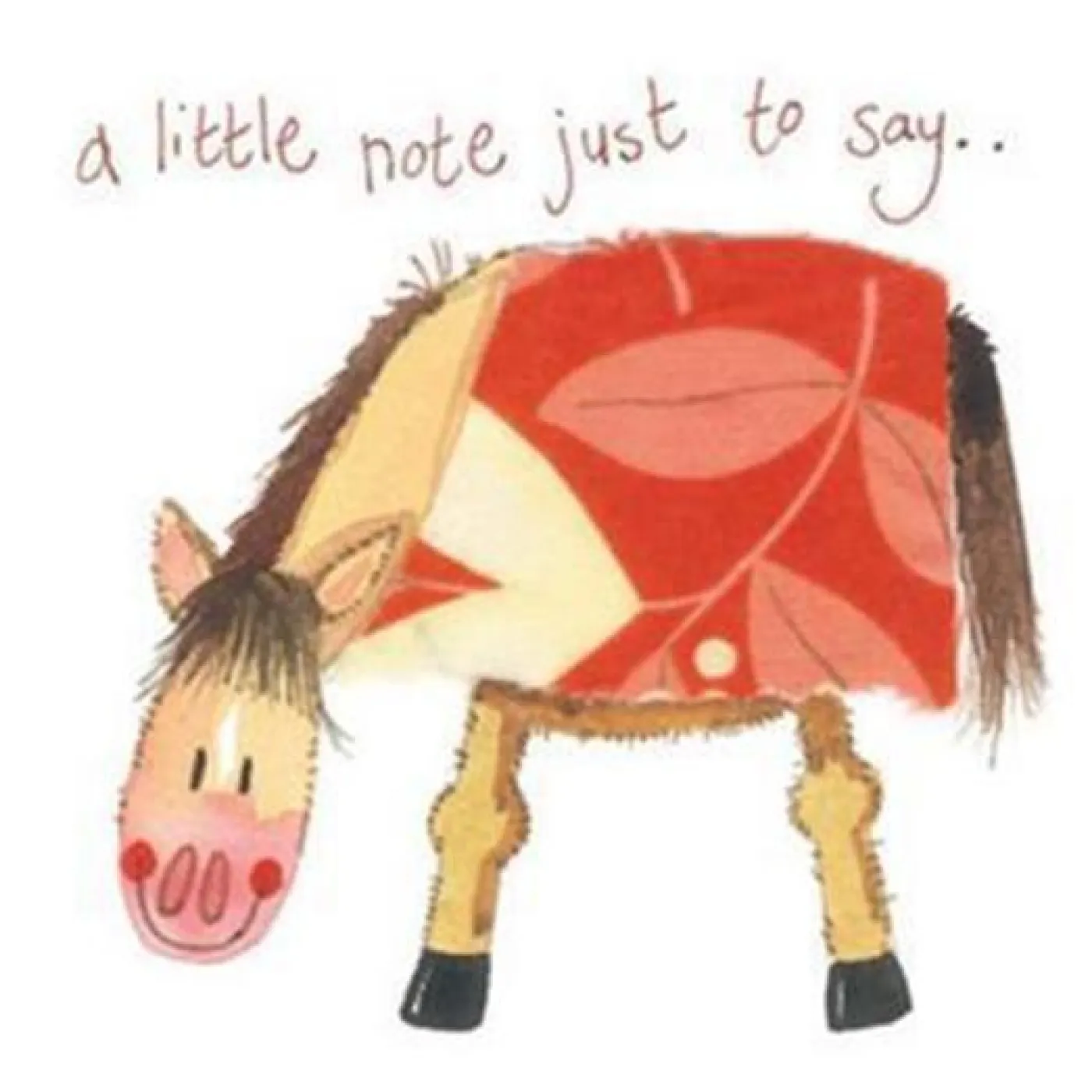 Send a little note to someone with this blank card that features an adorable horse cartoon on the front. Glittered and embossed for a special finishing touch. Includes an envelope.