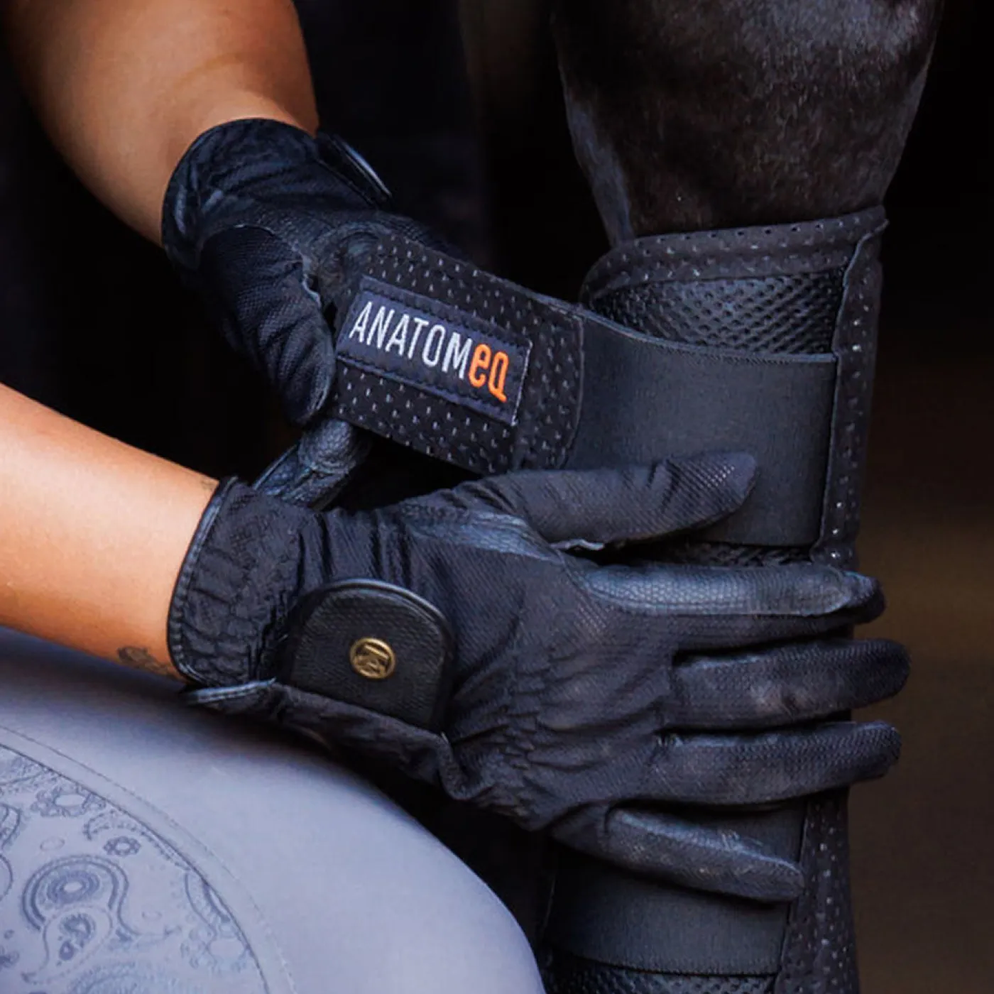 The Anatomeq AirGuard Brush Boots are designed to protect your horse’s legs without the bulk. Fully perforated to maximize airflow and promote heat dissipation and moisture evaporation. Made from 3D mesh that is cushioning, quick-drying and breathable. Complete with a perforated vegan suede exterior for added durability with hook and loop straps.