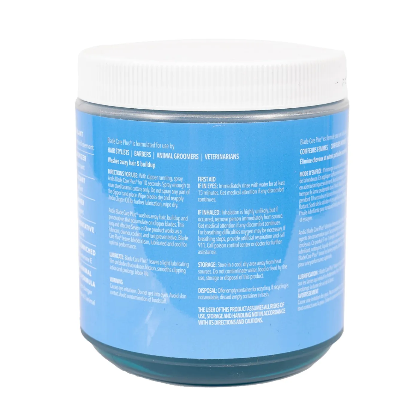 Directions for Use – Pour a small amount of Blade Care Plus into the jar’s lid or bowl. Gently immerse your blade under the liquid’s surface. Run your clipper for five seconds to rinse away excess hair and other buildup.