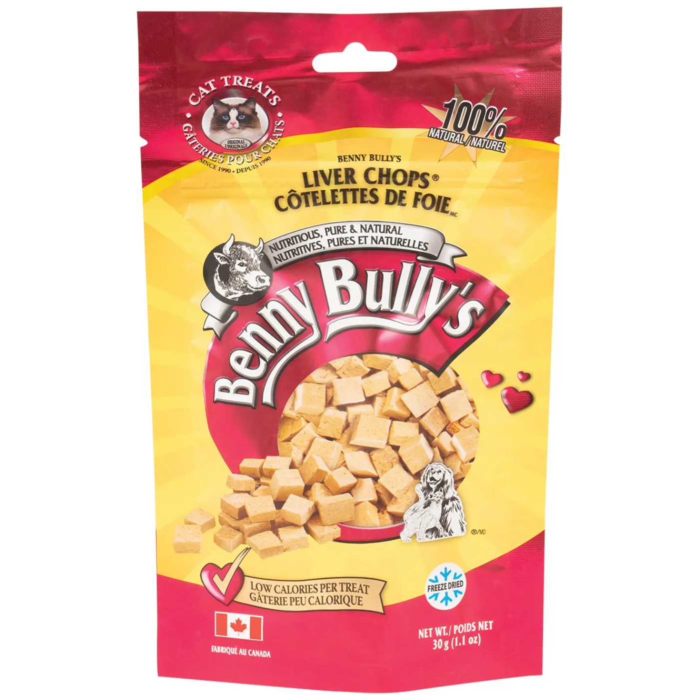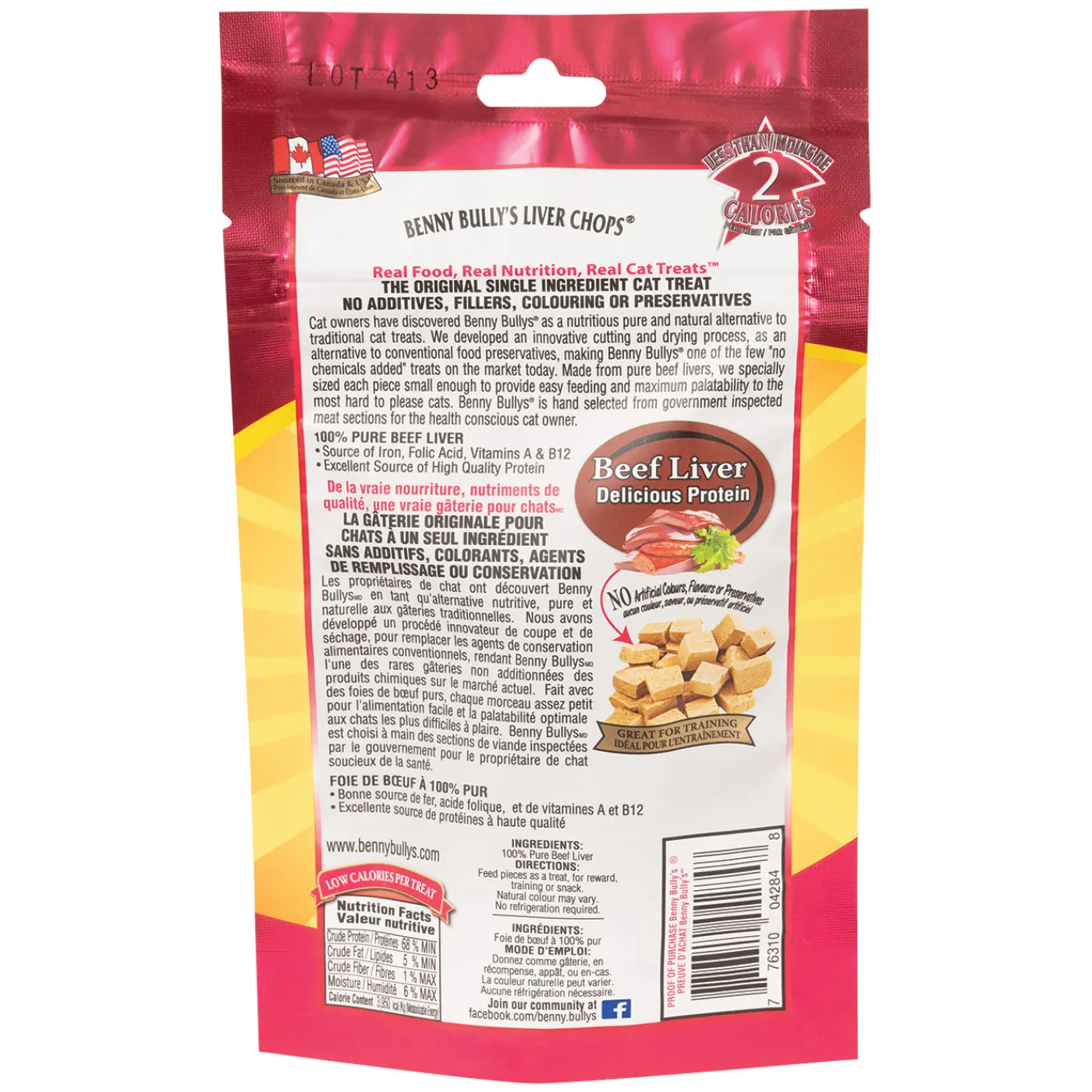 Benny Bully’s Liver Chops Cat Treats offer a nutritious and natural alternative to traditional cat treats. Developed with an innovative cutting and drying process, as an alternative to conventional food preservatives. Made from pure beef livers, in a small size to provide easy feeding and maximum palatability to the most hard to please cats.