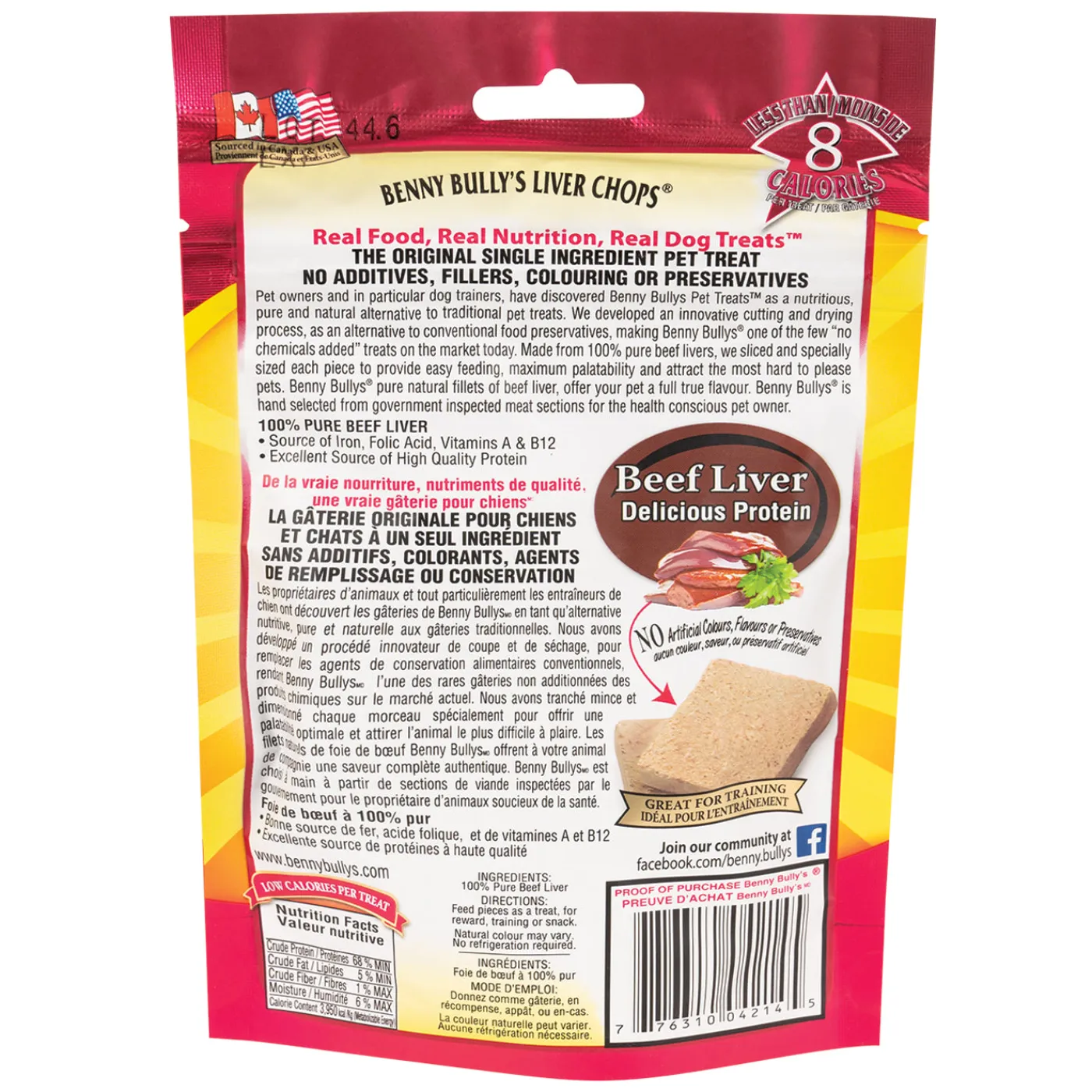 Pet owners and in particular dog trainers, have discovered Benny Bully’s Liver Chops as a nutritious, pure and natural alternative to traditional pet treats. Instead of using conventional food preservatives, Benny Bully’s uses an innovative cutting and drying process free of chemical ingredients. Made from pure natural beef livers sliced and specially sized, each piece provides easy feeding, maximum palatability and attracts the most hard to please pets. Benny Bully’s pure natural fillets of beef liver, hand selected from government inspected meat sections, offer your pet a full true flavour.