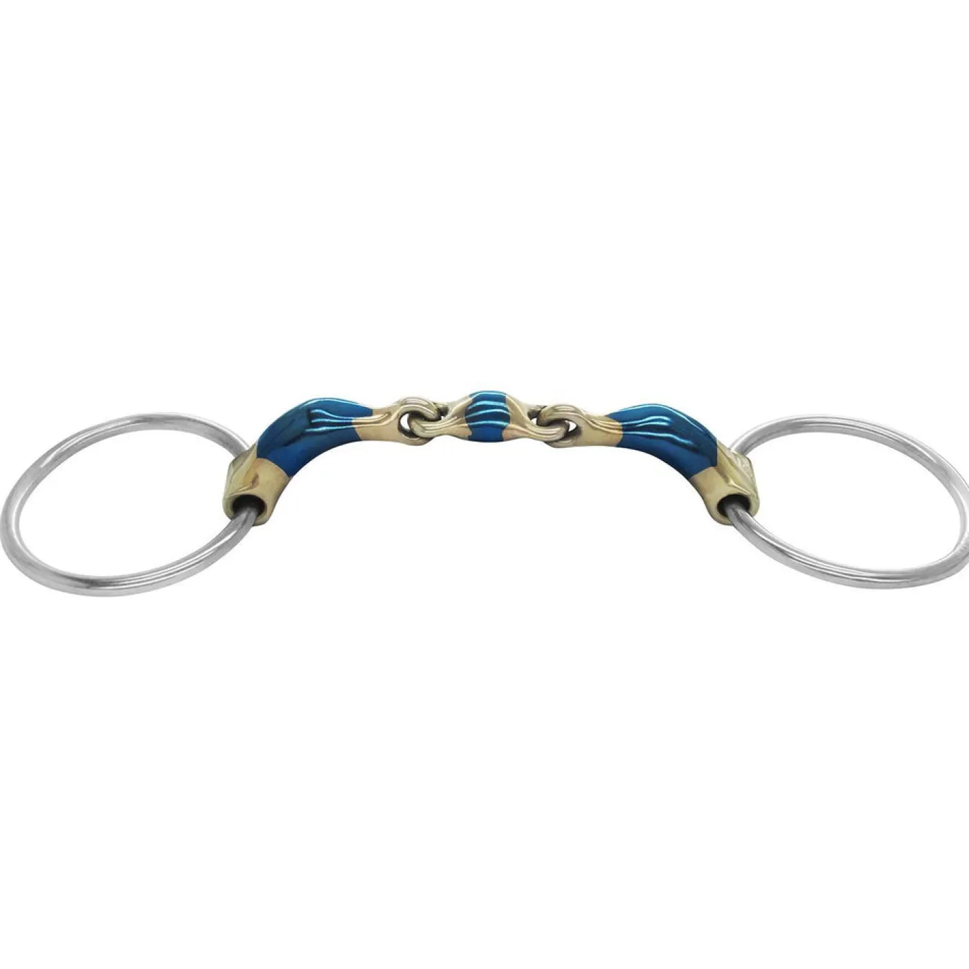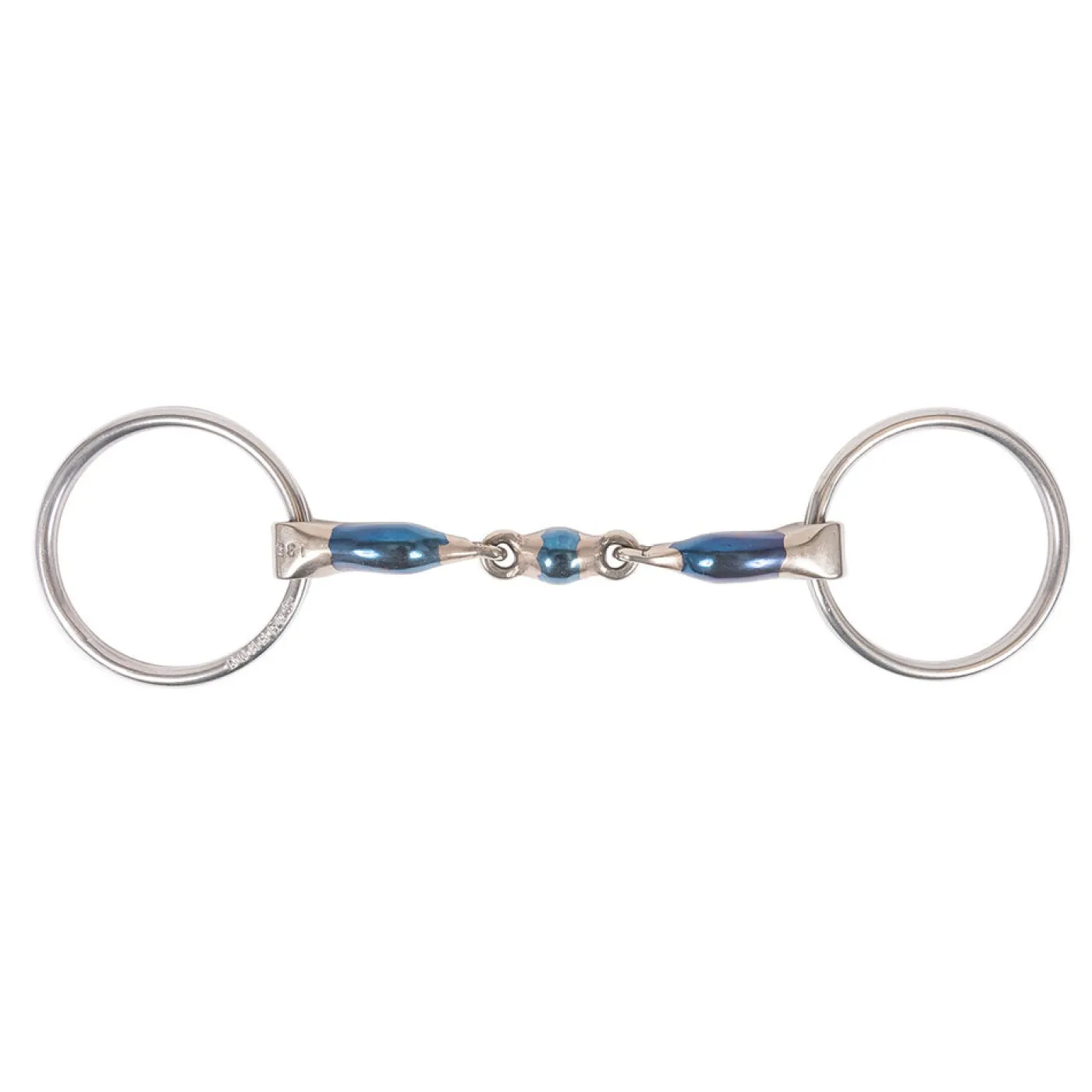 Created from blue sweet iron to help encourage salivation, the Bombers Loose Ring Elliptical Dressage Control Bit helps to prevent the horse from using its tongue to push against the bit. Featuring an ergonomically shaped mouthpiece and a flat lozenge joint to help provide softer tongue pressure. The double-jointed mouthpiece facilitates movement in the horse’s mouth to help encourage bit acceptance. The blue sweet iron oxidizes easily and offers a warm, sweet taste for your horse.