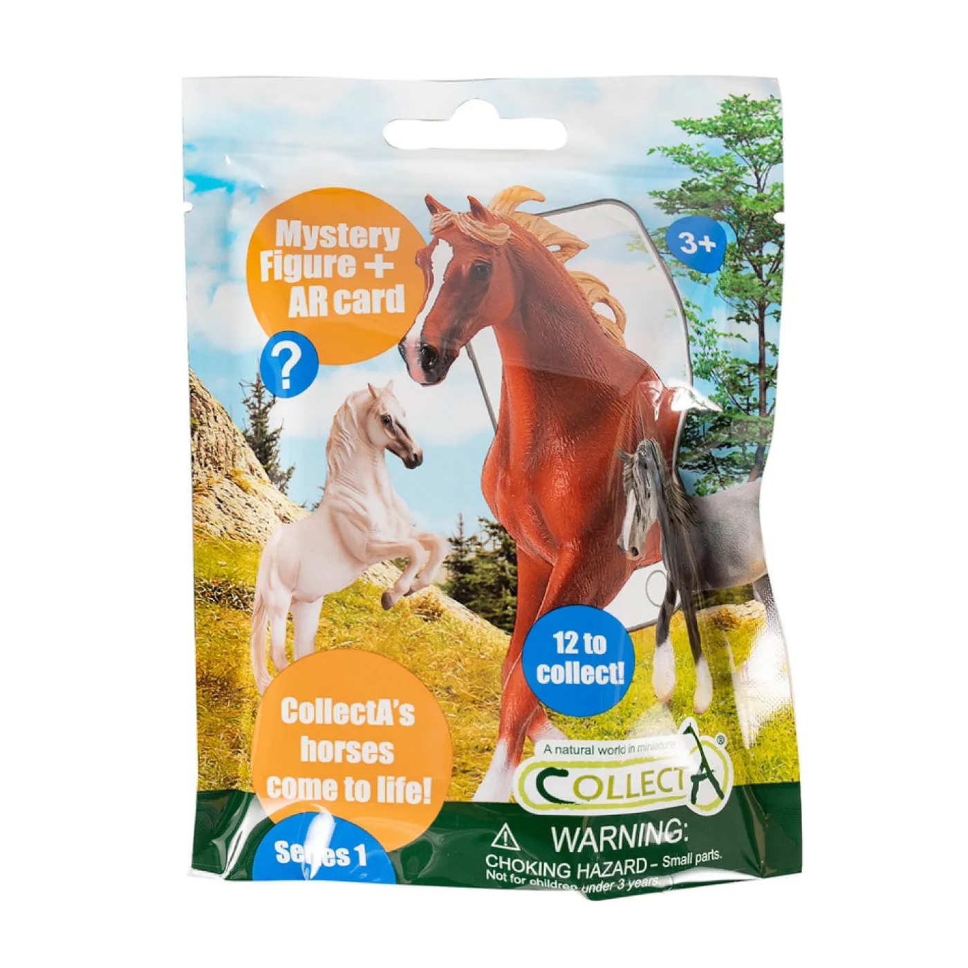 CollectA Horse Blind Bag offers a fun surprise; a collectible horse complete with an AR experience – all in one blind bag! Download the App from the App Store or Google Play to watch each of the 12 horses come to life with Augmented Reality! There are 12 different models. Each comes in a blind bag with one double-sided card with educational facts and a scenery photo. Collect them all!