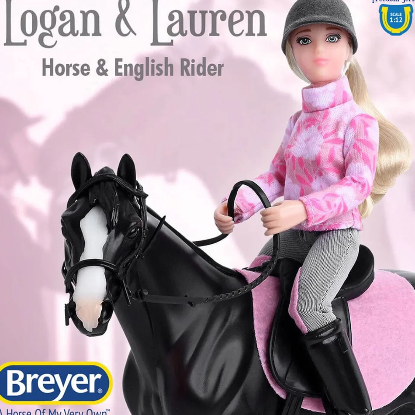 Whether riding in the show ring or for a round of practice, English rider Lauren and her beautiful dark, seal bay horse, Logan, are ready to leap into action! This horse and rider set includes a 6 in posable rider in pretty pink riding gear, a Freedom Series horse, a pink saddle pad to match the rider’s outfit, an English saddle, and bridle.