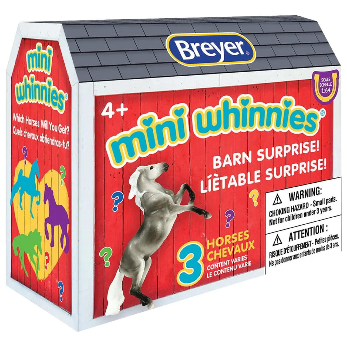 This series of Mini Whinnies horses features a reusable barn-shaped package and includes three new horses. There are six different horses, plus a special chase piece, which are randomly packaged so which ones you receive will be a surprise! Each Barn Surprise comes with three different horses. And select packages will include a rare chase piece! Collect them all! Fun for all ages!