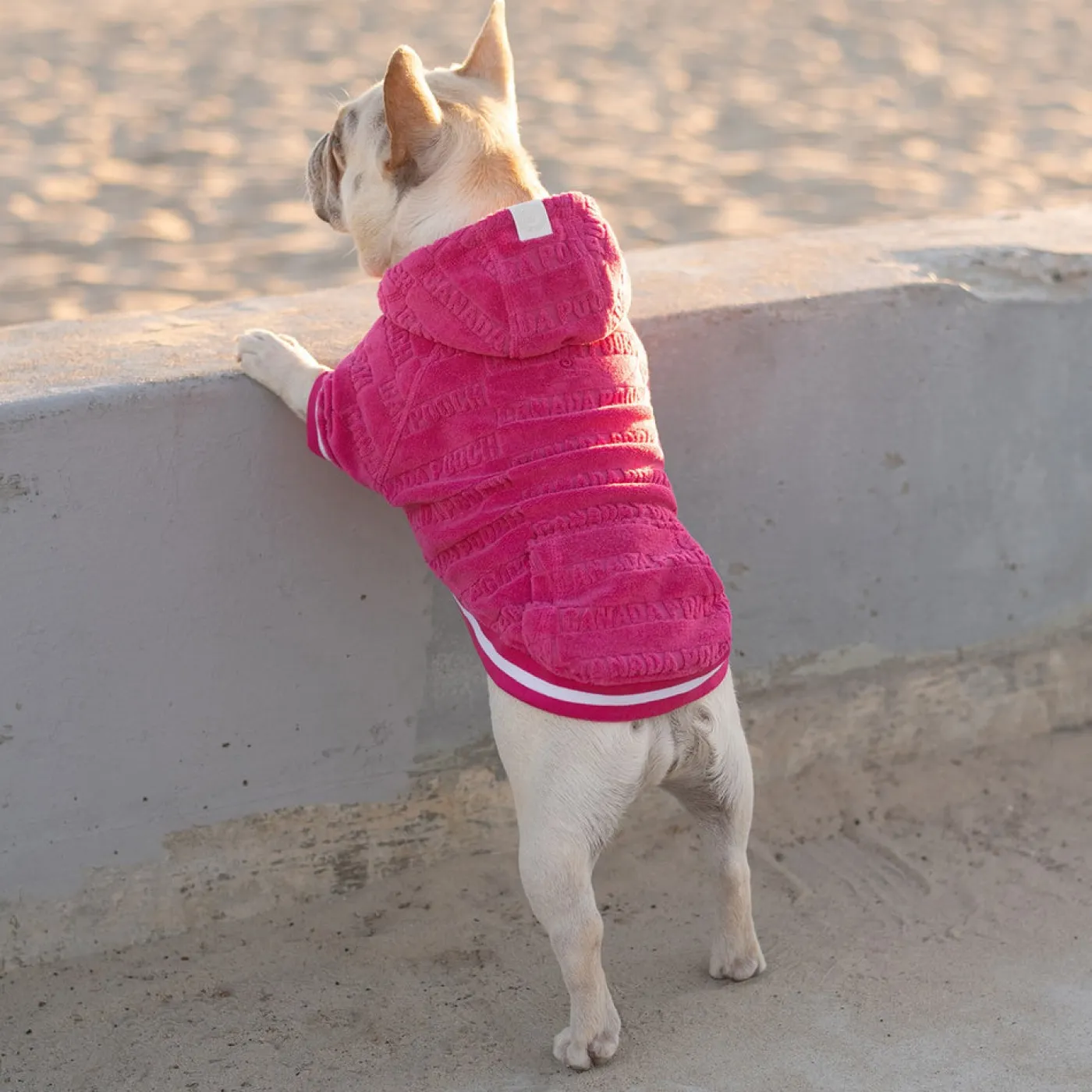 The Canada Pooch Beach Bum Towel Hoodie may be conveniently used as a dog drying towel on the go. Constructed from absorbent terry fabric with a lined hood for wiping their head and ears. Complete with a rib hem and cuff for the perfect fit.
