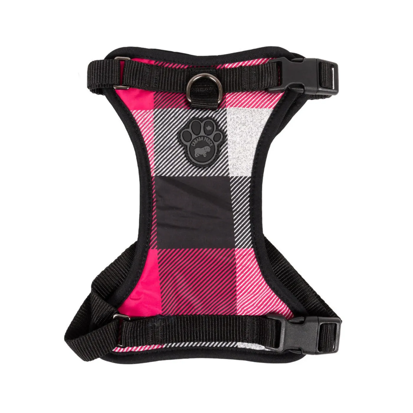 The Canada Pooch Everything Dog Harness is a comfortable and functional no-pull harness. The front D-ring attachment creates a no pull walking experience with an optional rear D-ring. The water-resistant exterior will keep your pup warm when they’re in the great outdoors. Adjustable and customizable fit and the neck and girth. Includes a seatbelt loop and a functional assistance handle.