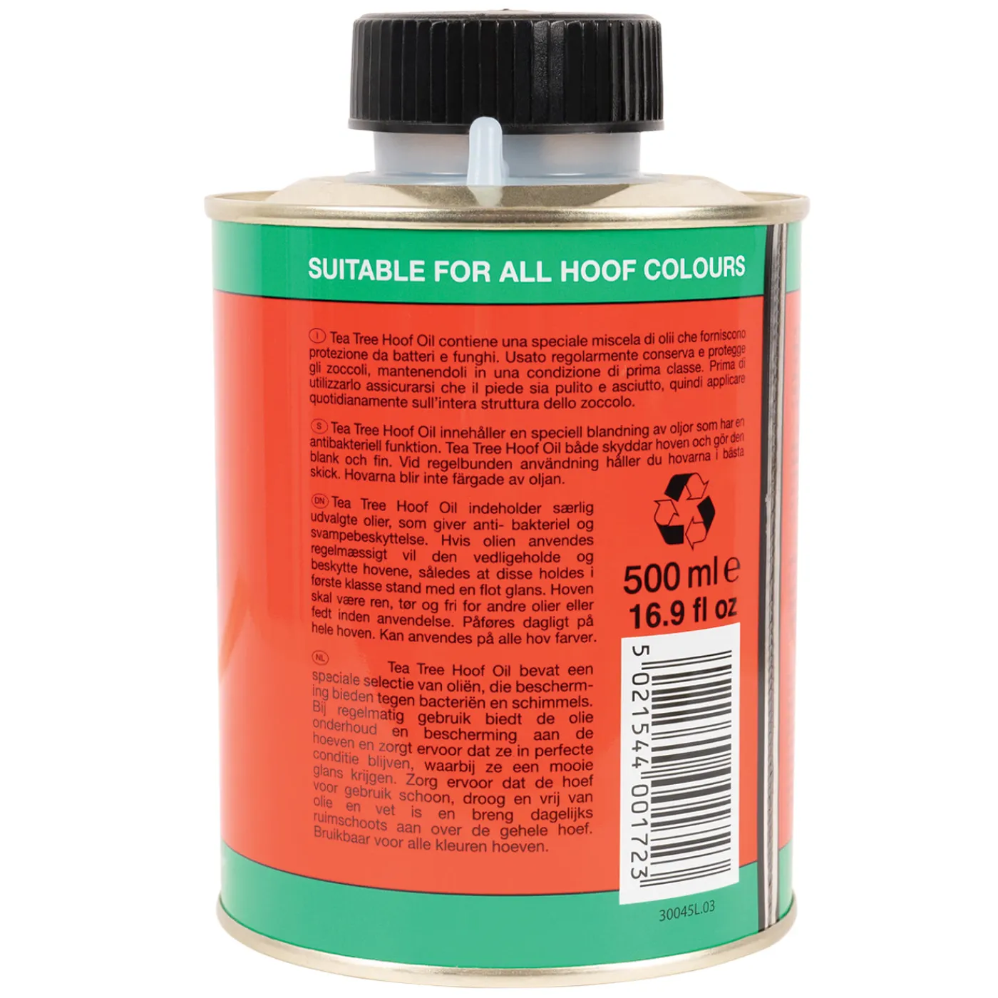 A modern alternative to traditional style oils. Helps maintain and protect the hoof, leaving a lasting show ring shine. This rich, translucent oil is suitable for all hoof colours. Contains tea tree oils which have natural properties to support the hoof. 500 mL.