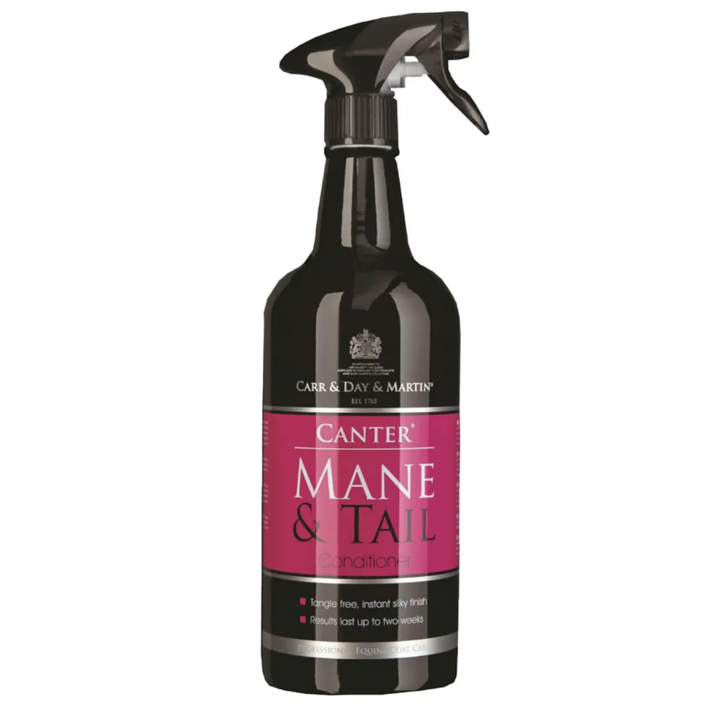 Canter Mane and Tail Conditioner is never equaled in its ability to keep the mane and tail sleek, tangle-free and luxuriously soft. This powerful detangler is our most popular product and is a favourite around the world. This original, long-lasting conditioner makes grooming quick and easy, and reduces hair breakage all while leaving an immaculate, oil free shine. For best results, shampoo first with Gallop Shampoo. Can be used on wet or dry hair. Results are immediate and last for up to 2 weeks. 1 L