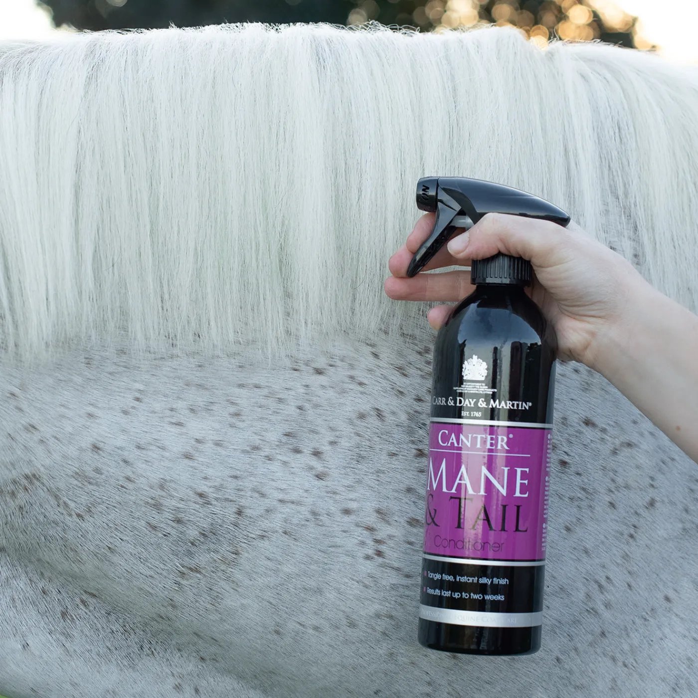 Canter Mane and Tail Conditioner is never equaled in its ability to keep the mane and tail sleek, tangle-free and luxuriously soft. This powerful detangler is our most popular product and is a favourite around the world. This original, long-lasting conditioner makes grooming quick and easy, and reduces hair breakage all while leaving an immaculate, oil free shine. For best results, shampoo first with Gallop Shampoo. Can be used on wet or dry hair. Results are immediate and last for up to 2 weeks.
