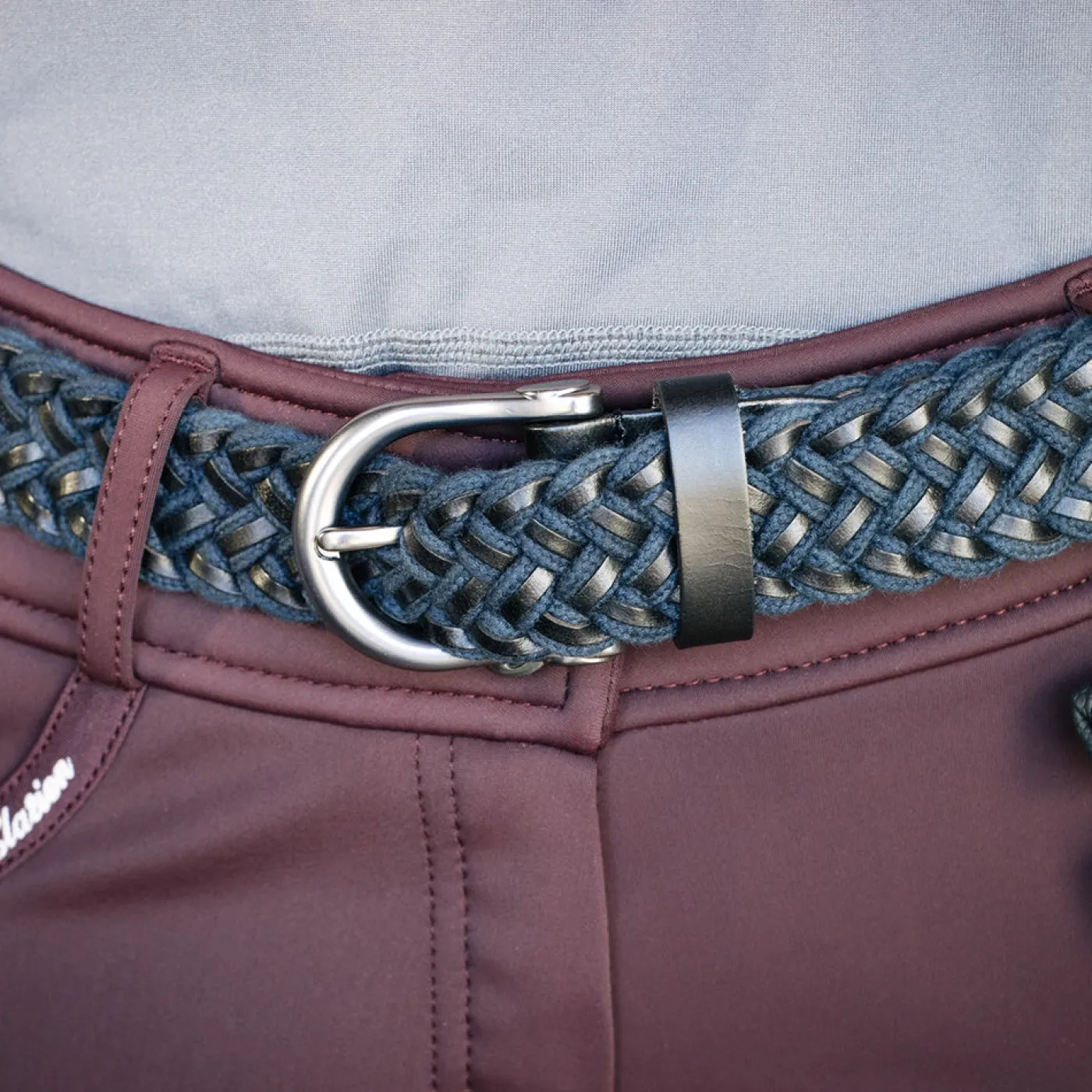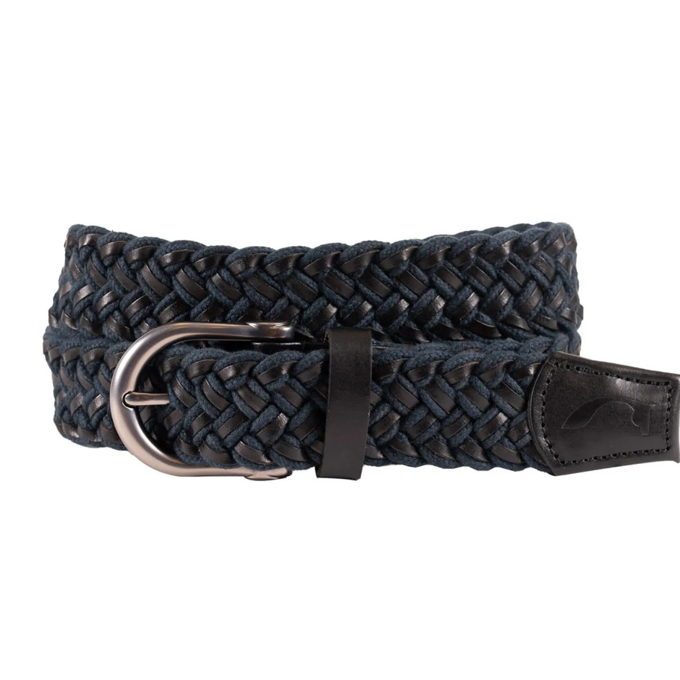 Get the perfect fit every time with the Cinto Braided Leather & Rope Belt. This leather and rope braided belt has no belt holes. Instead, choose any size you like and slide the buckle through the woven belt for a custom fit! Made from Buffalo leather, this belt is easy to dress up for the show ring or down for schooling. Finished with brushed matte gunmetal hardware, a leather keeper and a heat stamped logo. One size fits most.