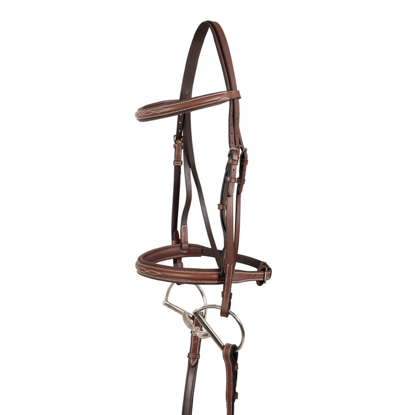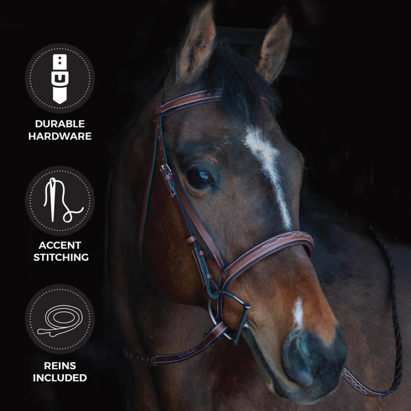 Step into the show ring with Connemara’s Padded Fancy Stitched Bridle. The fancy stitched, padded noseband and browband offers additional comfort for your horse. This exceptional bridle features raised, hand burnished edges and durable hardware. Complete with 5/8″ laced reins.