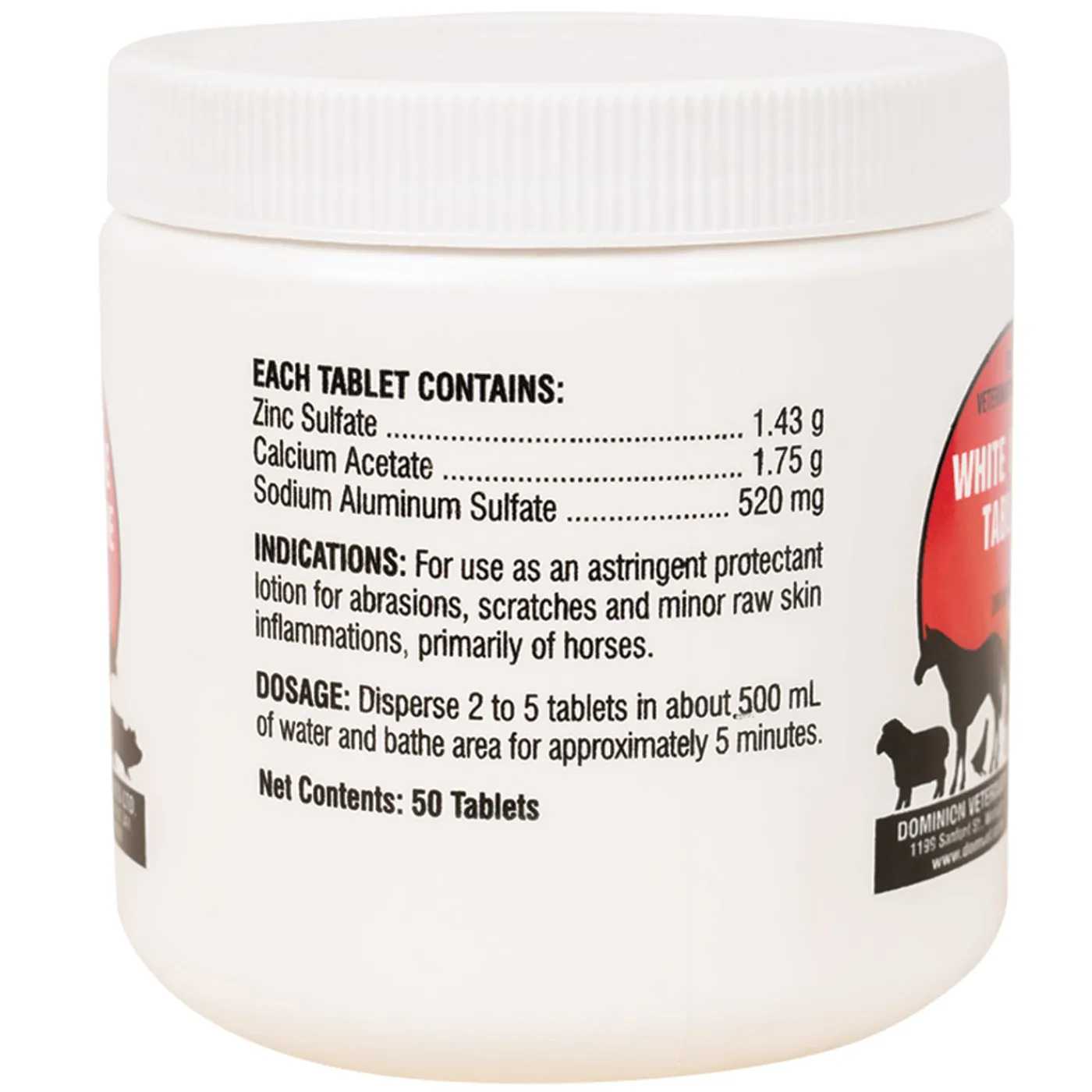 White Lotion Tablets may be used as an astringent protectant lotion for abrasions, scratches, and minor raw skin. For use, simply disperse 2-5 tablets in water and bathe the affected area.