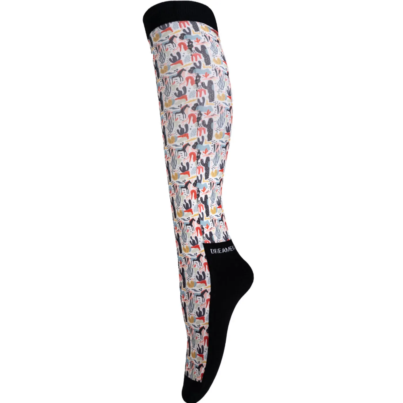 Perfect for schooling or at the show, Dreamers & Schemers boot socks are suitable for use under tall boots and feature a breathable construction with a thinly padded cotton terry footbed for all day comfort. The inclusion of a flat seam toe helps to eliminate rubbing and the padded footbed carries up the back of the sock to help protect your heel. Complete with a cactus design.