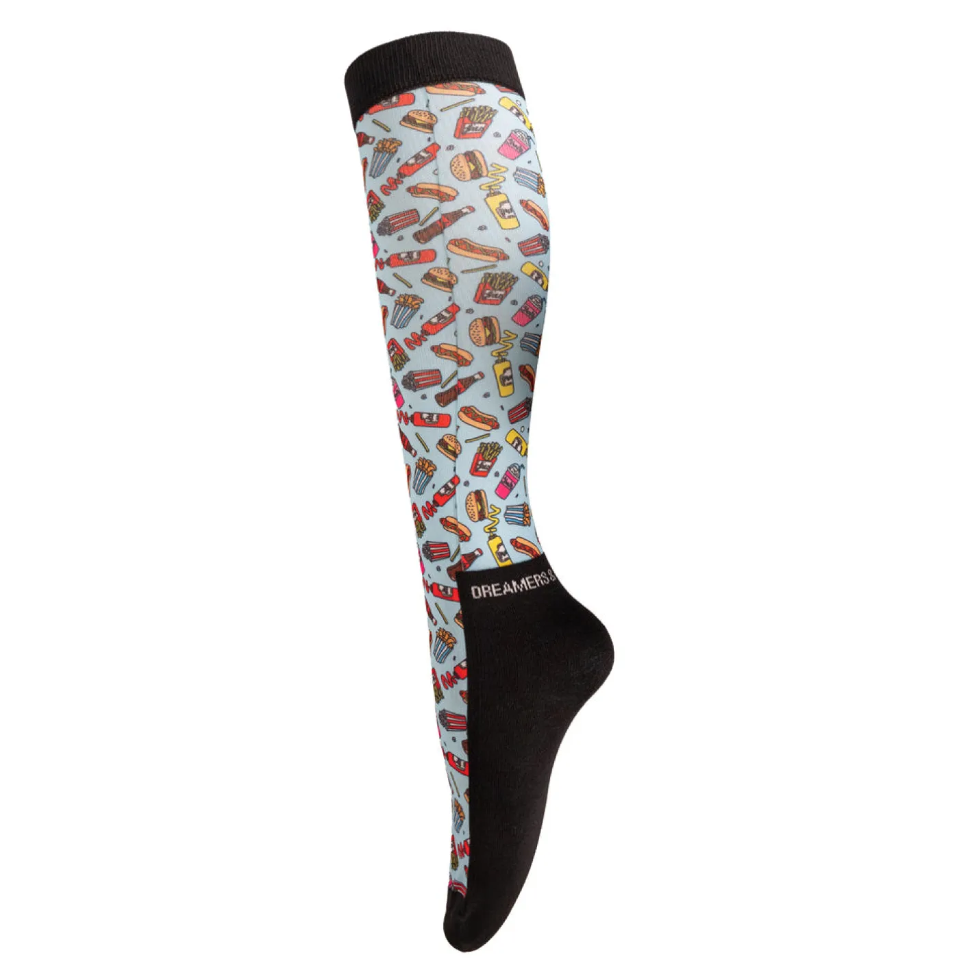 Perfect for schooling or at the show, Dreamers & Schemers boot socks are suitable for use under tall boots and feature a breathable construction with a thinly padded cotton terry footbed for all day comfort. The inclusion of a flat seam toe helps to eliminate rubbing and the padded footbed carries up the back of the sock to help protect your heel. Complete with a snack inspired design.