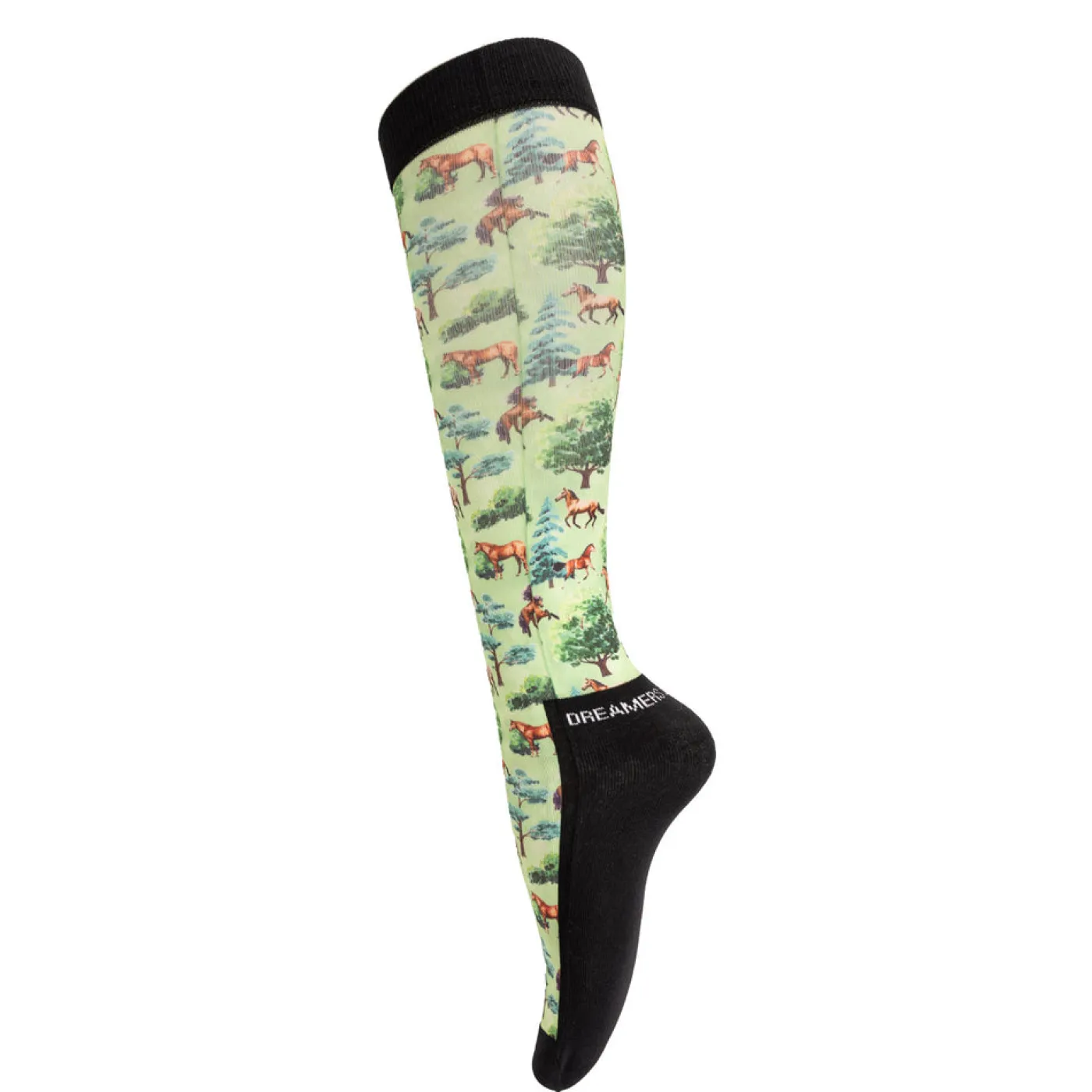 Perfect for schooling or at the show, Dreamers & Schemers boot socks are suitable for use under tall boots and feature a breathable construction with a thinly padded cotton terry footbed for all day comfort. The inclusion of a flat seam toe helps to eliminate rubbing and the padded footbed carries up the back of the sock to help protect your heel. Complete with an equestrian design.