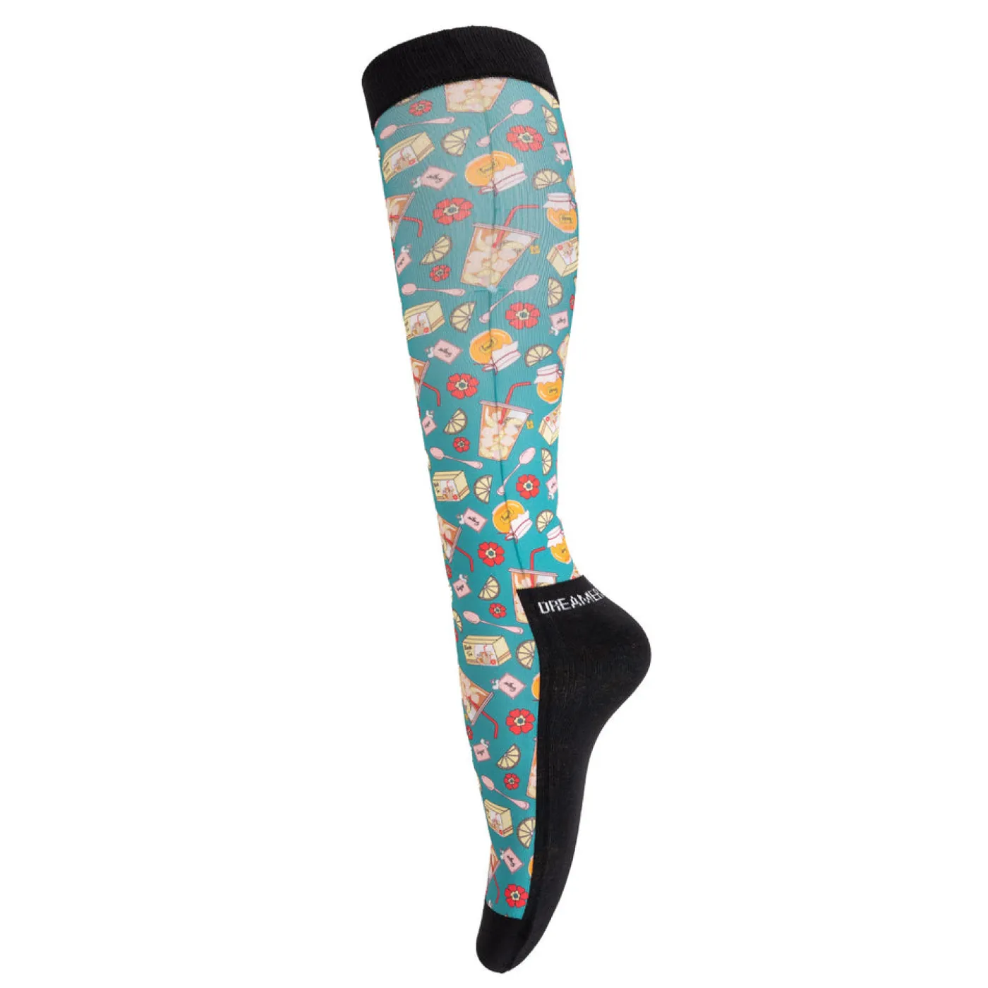 Perfect for schooling or at the show, Dreamers & Schemers boot socks are suitable for use under tall boots and feature a breathable construction with a thinly padded cotton terry footbed for all day comfort. The inclusion of a flat seam toe helps to eliminate rubbing and the padded footbed carries up the back of the sock to help protect your heel. Complete with a sweet tea design.