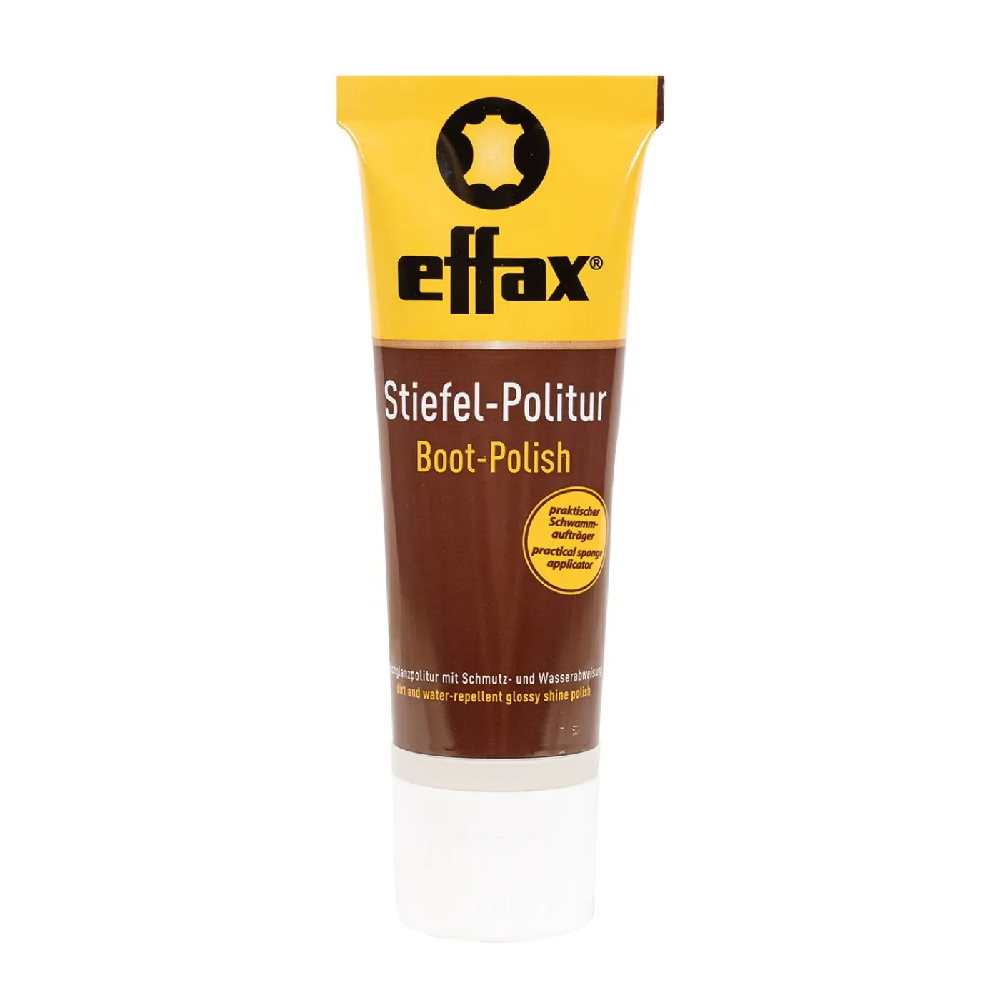 Effax Boot Polish gives a glossy shine to leather riding boots. The dirt- and water-repellent effect means the boots can always be polished up again quite easily! It’s strikingly simple: Clean the boots, apply the polish sparingly and polish with a clean cloth after allowing to dry. It’s perfectly simple – and your boots will have a perfect shine. Made without parabens!