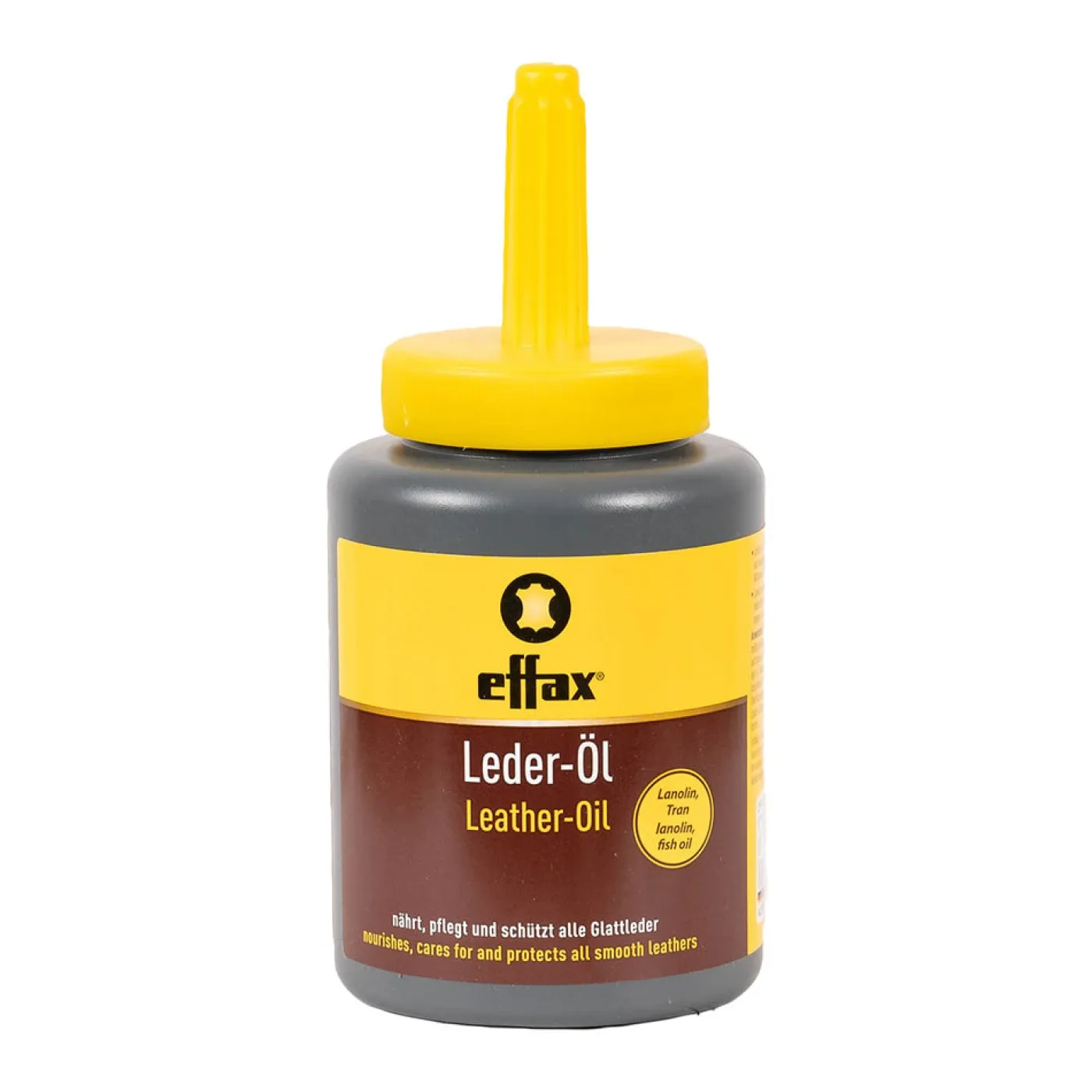 Treat your tack to the best with Effax Leather Oil. This high quality oil nourishes, cares for and protects all smooth leathers against moisture. Vaseline, genuine train oil and other high-quality, leather-caring substances ensure durability and reliability of your leather equipment. Free of silicone, parabens, microplastics, acids and resin. Easy to use with an integrated brush. 475 mL.