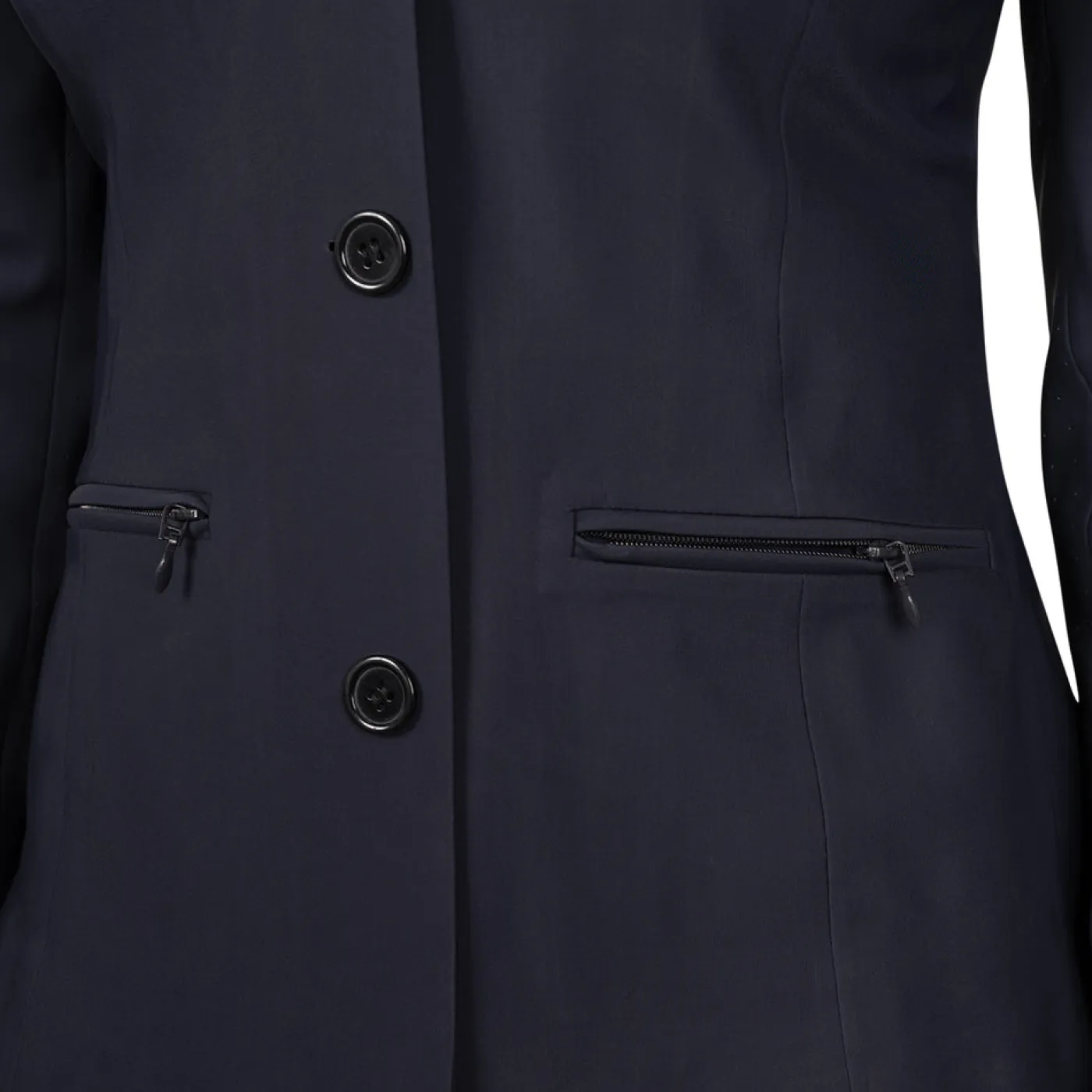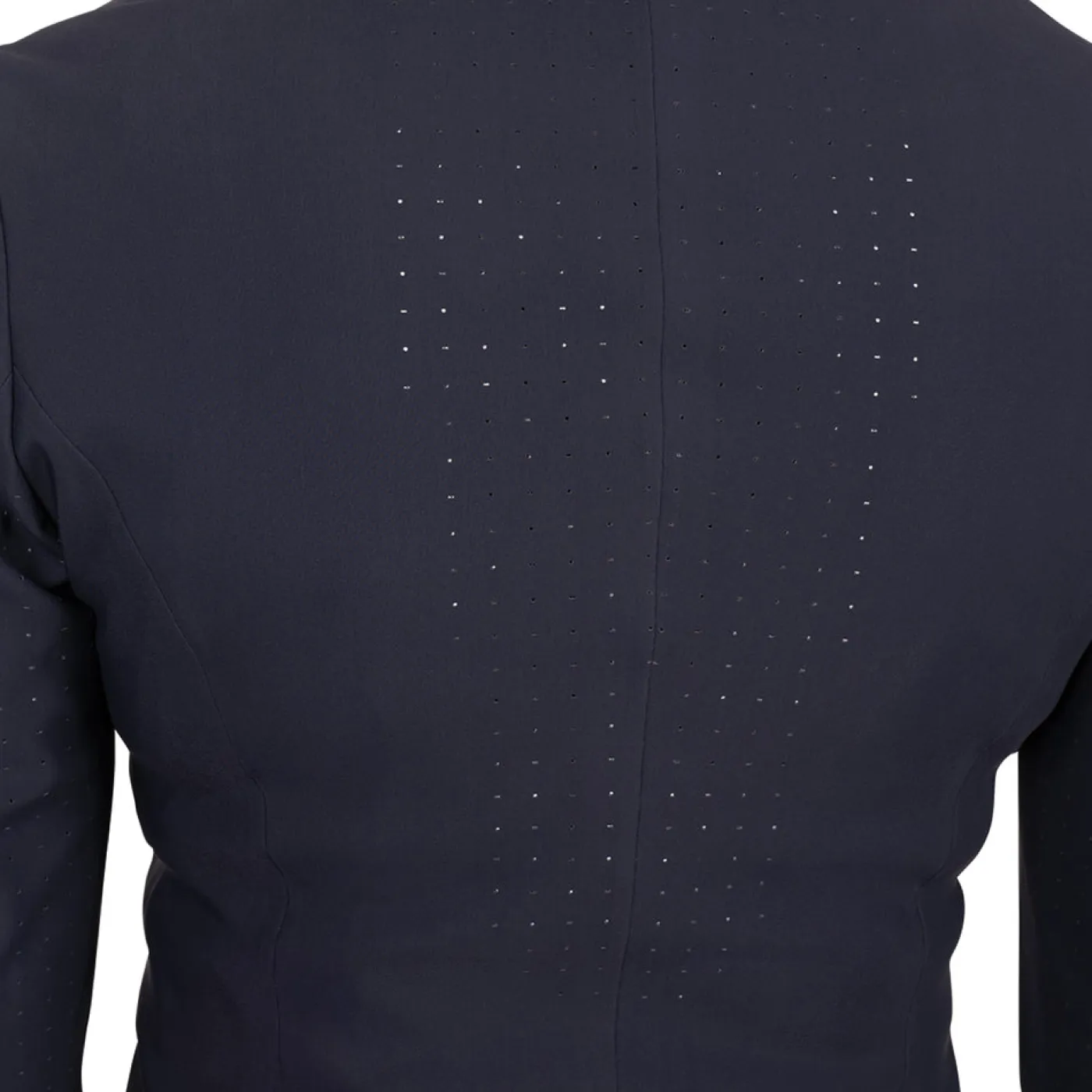 The Elation Diamond Show Jacket offers modern styling with a technical and breathable construction. Features strategically placed mesh paneling on the back and sleeves for added airflow and circulation with lightweight, four-way stretch fabric for freedom of movement. Complete with a front zipper and buttons to help prevent gaping, and flat welt pockets with zippers. Seamless, stain resistant, and water repellant.