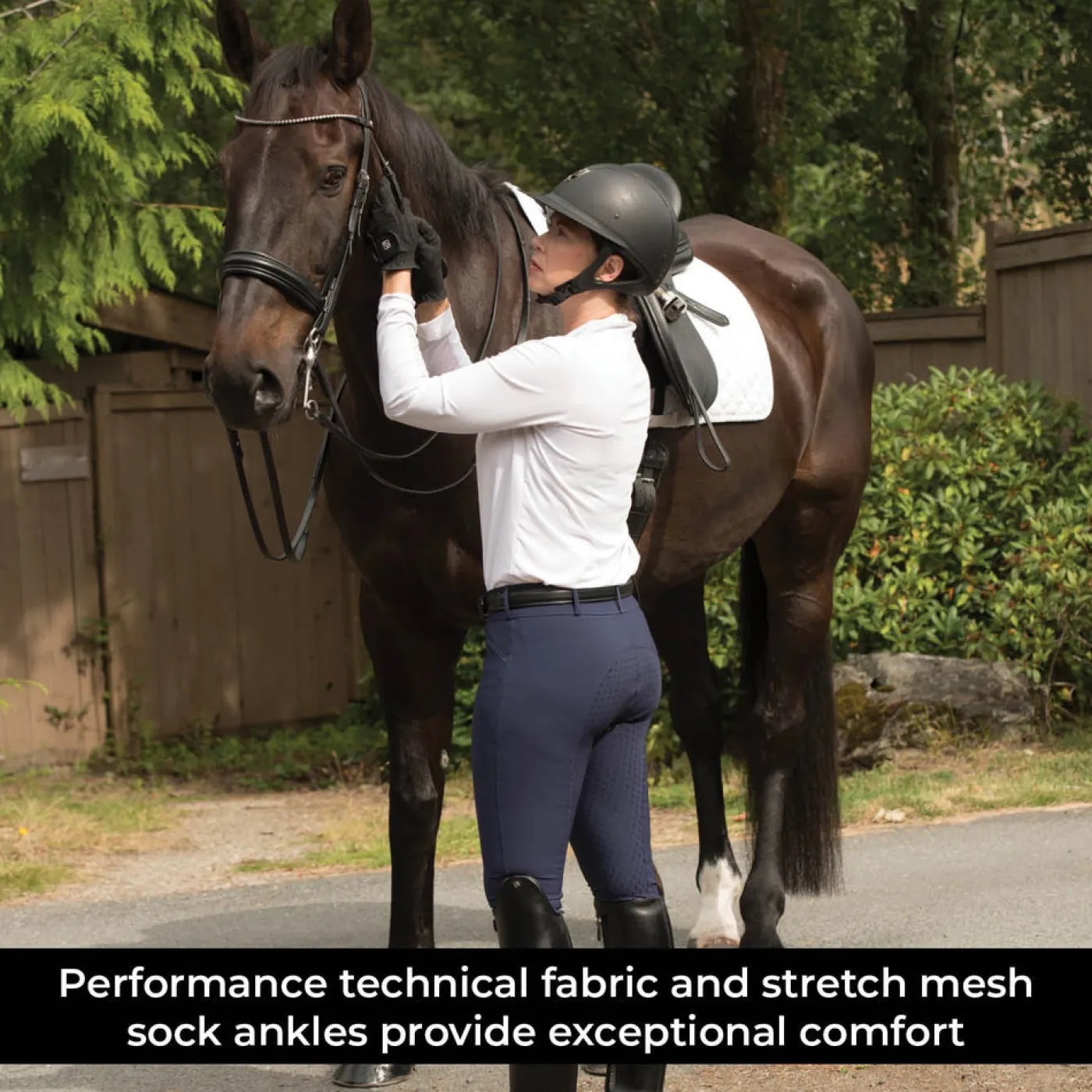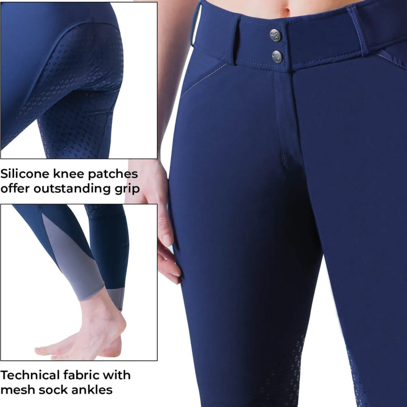 A breech that delivers on function and style, the Elation Platinum Morgan Full Seat Breech is the perfect choice for both the show and schooling rings. Crafted in a high-performance technical stretch fabric and featuring a silicone full seat for optimal grip. Created with a flattering Euro-seat design and stretch mesh sock ankles to provide an exceptional fit. Designed to be lightweight and breathable for outstanding comfort in and out of the saddle. Complete with a wide, comfortable waistband, belt loops and a front Gutos™ button and fly closure.