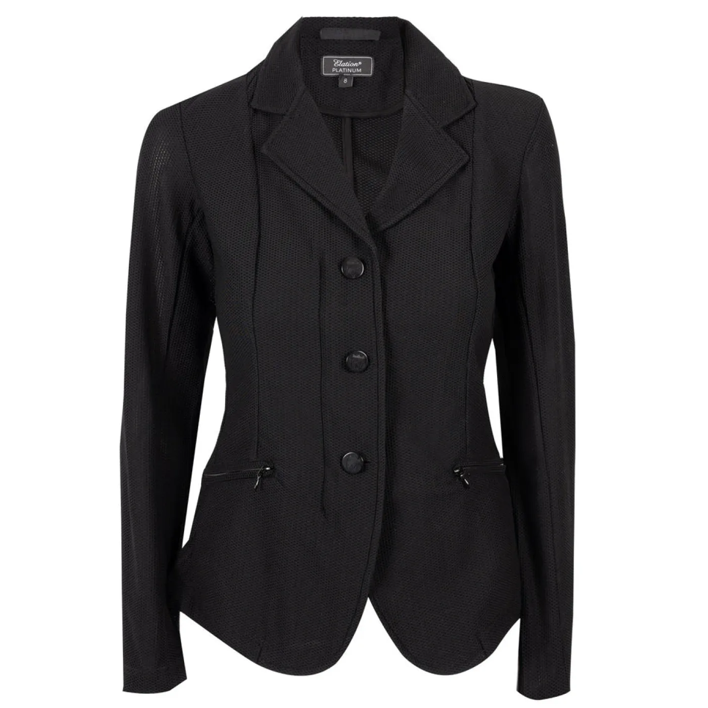 The Elation Platinum Ravello Show Jacket combines function with style, to help keep you cool and comfortable in the show ring. Constructed with breathable, stretch mesh for added mobility, and a double vented back to help keep you cool. Featuring a zip closure with buttons at the front, and functional pockets to hold ringside accessories including gloves.