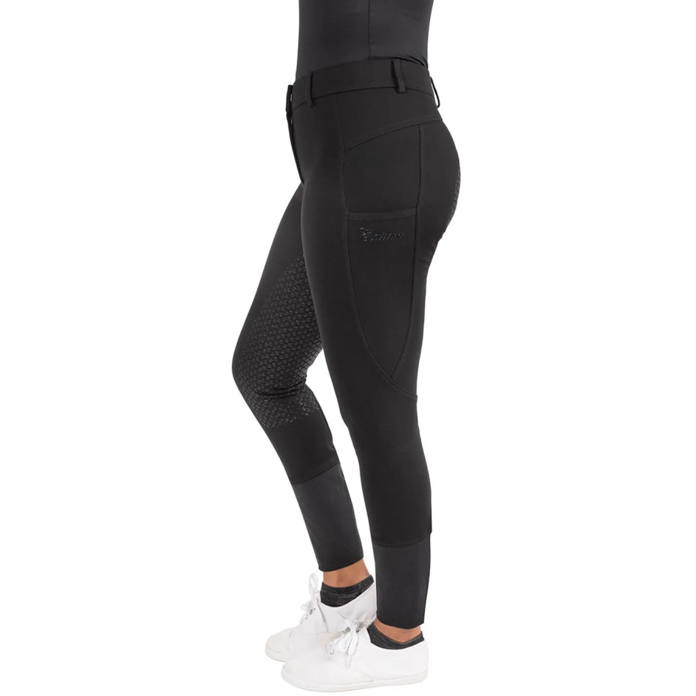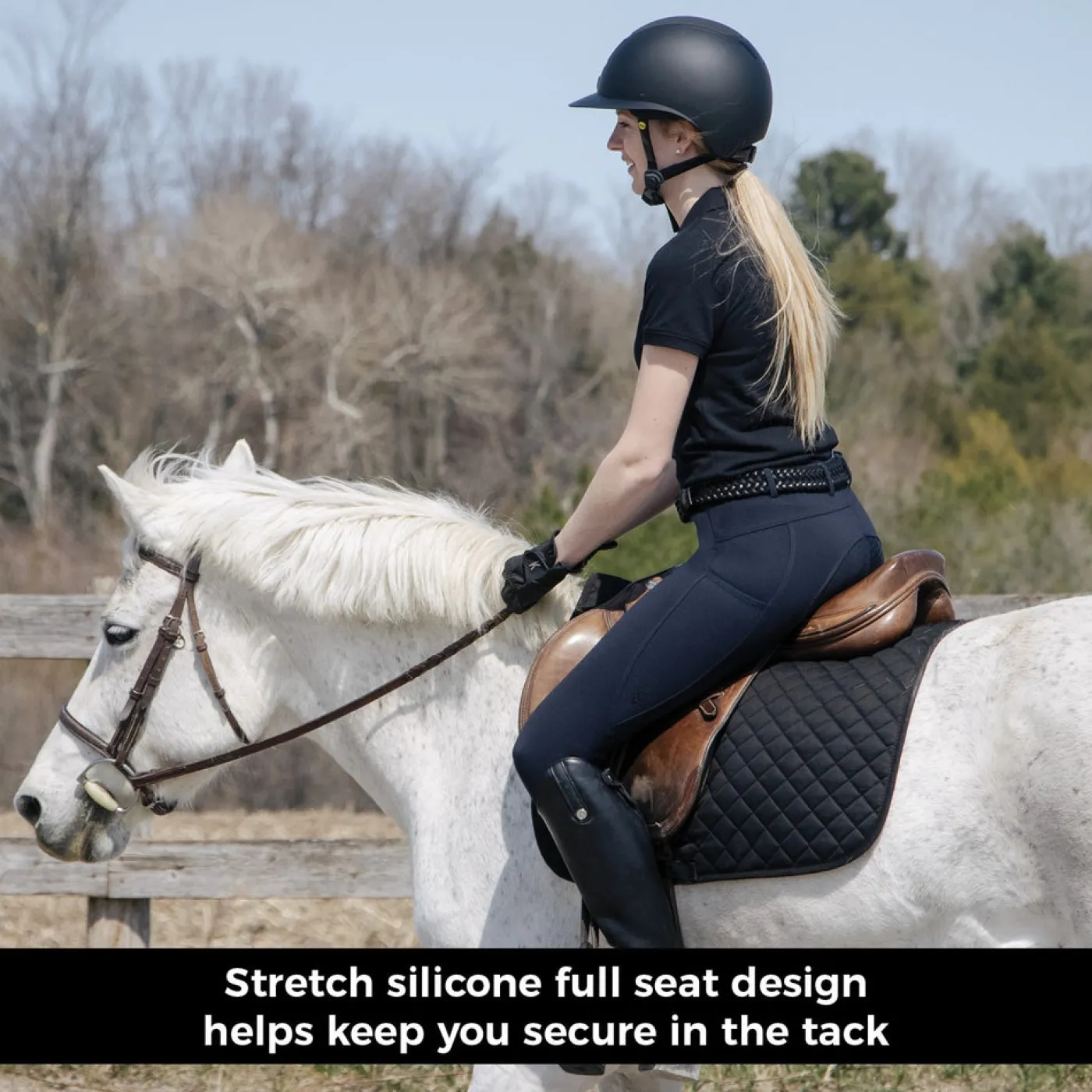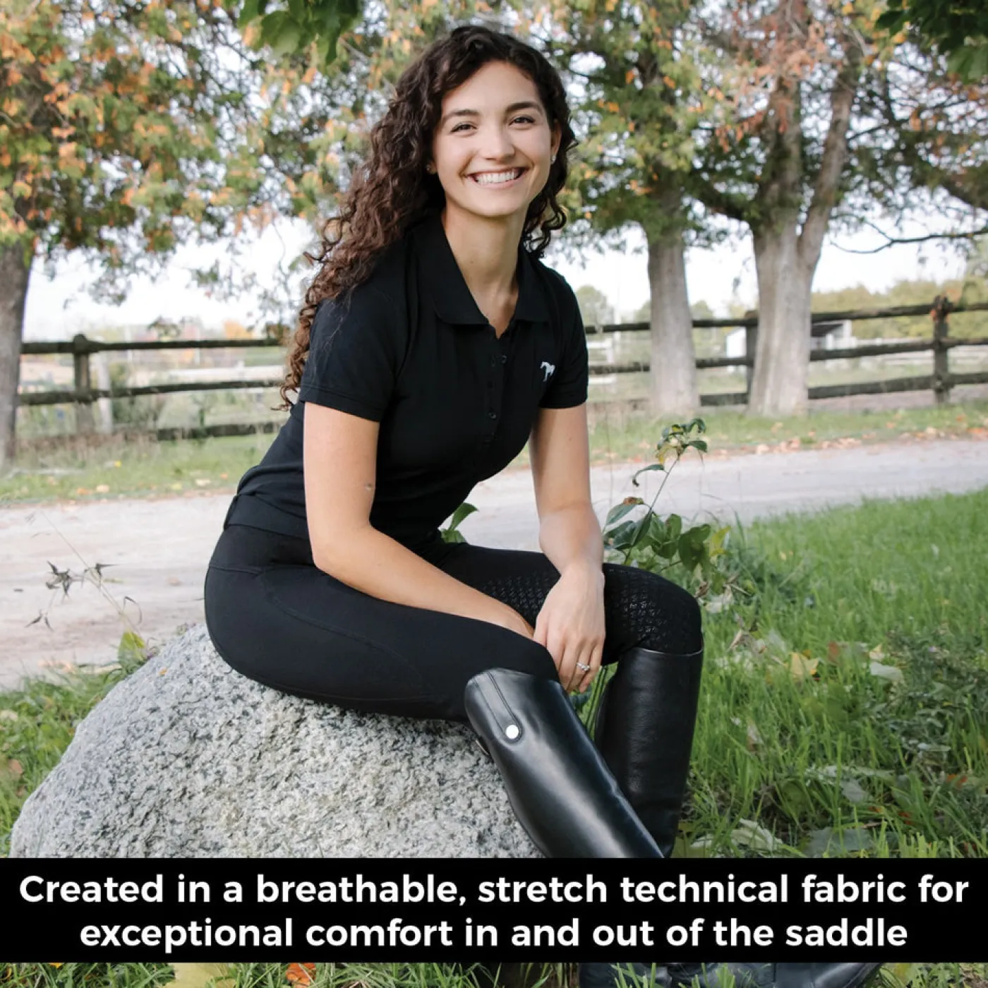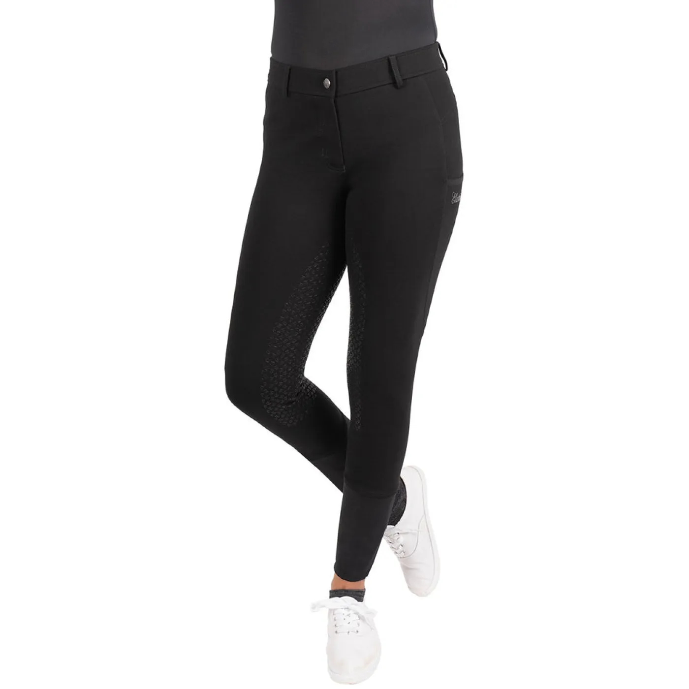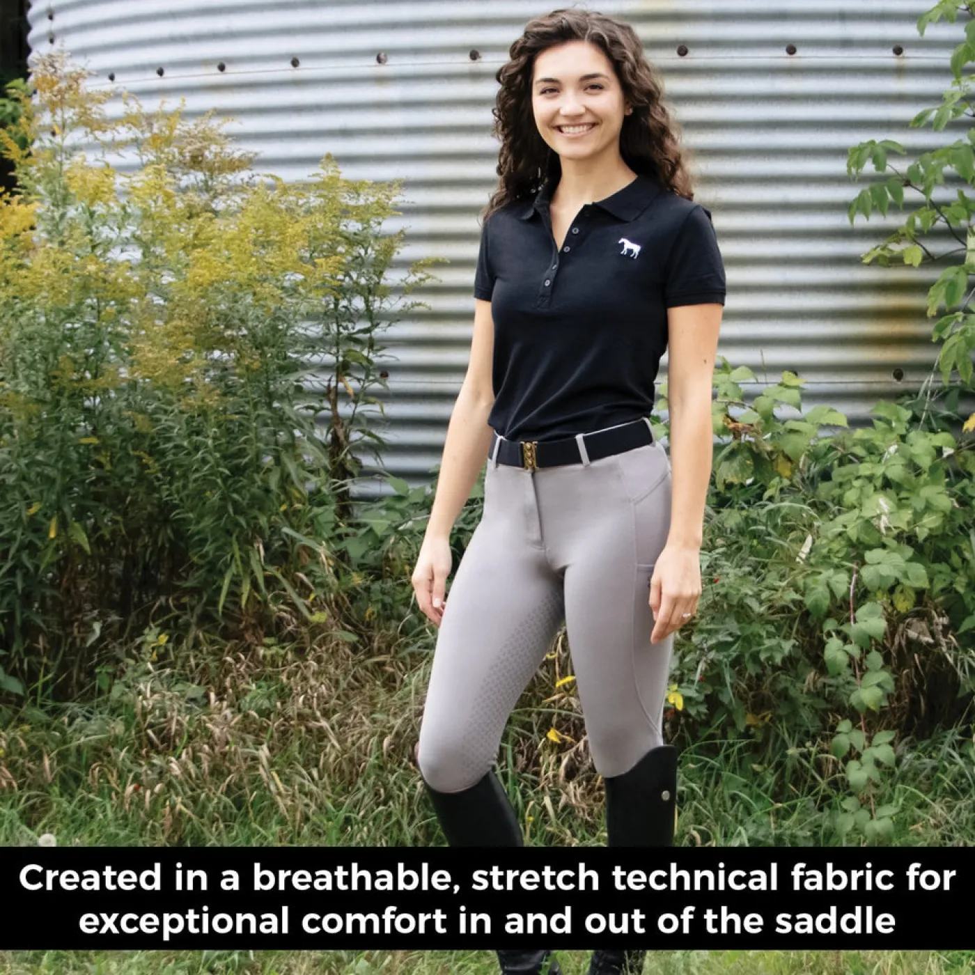 The Elation Red Label Sport Full Seat Breech is created in a performance stretch fabric and styled in a modern, sporty design for a flattering, comfortable fit. Designed to provide exceptional function, the breech features an anti-slip silicone full seat for exceptional grip and is complete with a convenient, low profile cell phone pocket. Technical fabric features four-way stretch and wicks moisture for all-day comfort in and out of the saddle. Crafted with stretch elastane sock ankles, an elasticized waistband and belt loops for an optimal fit.