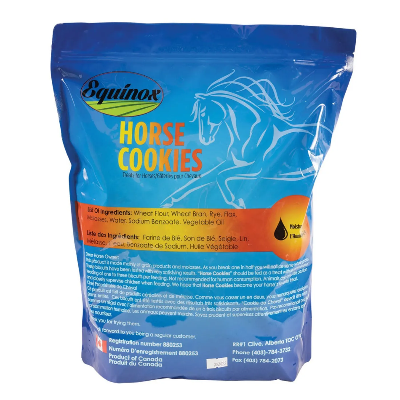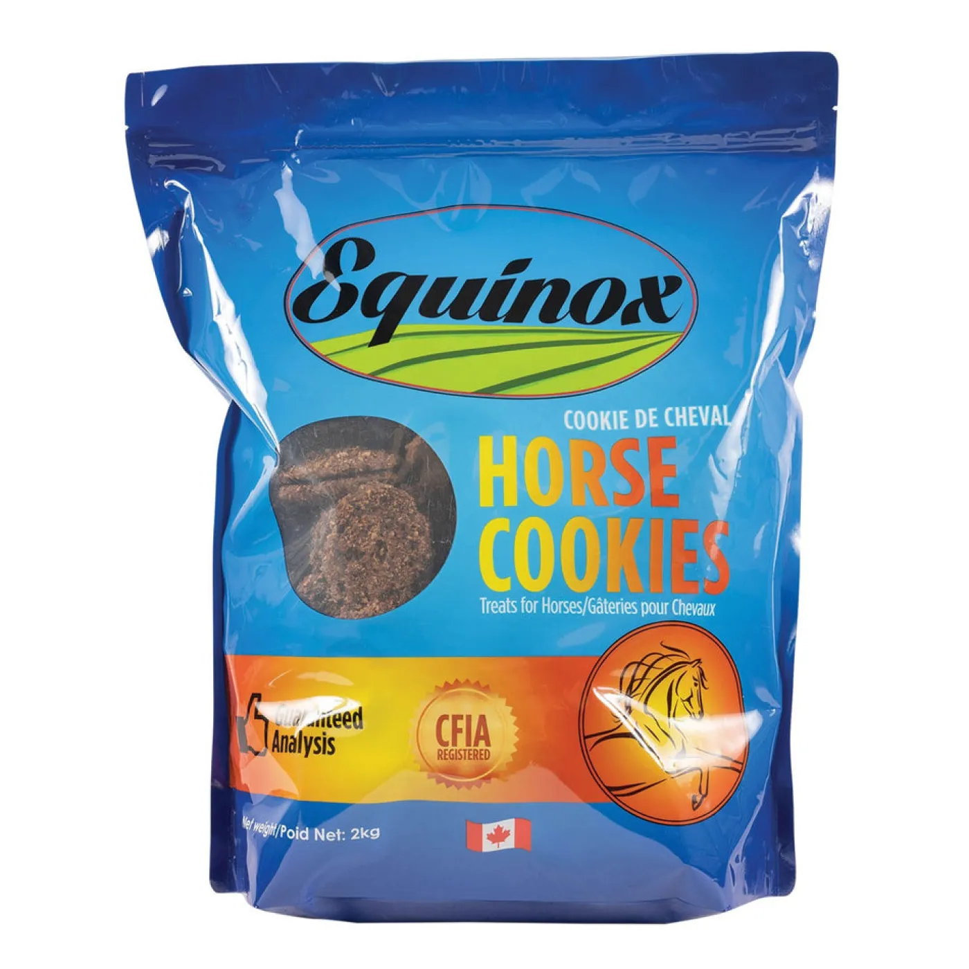 Equinox Horse Cookies are made from crushed grains, naturally sweet molasses and other healthy & delicious ingredients. These scrumptious horse treats come in easy-to-feed oval cookies that don’t fall apart and keep well when stored. Each cookie contains whole flax seeds to help give your horse a shiny coat. These biscuits will have your horse begging for more! Packaged in a convenient resealable bag.