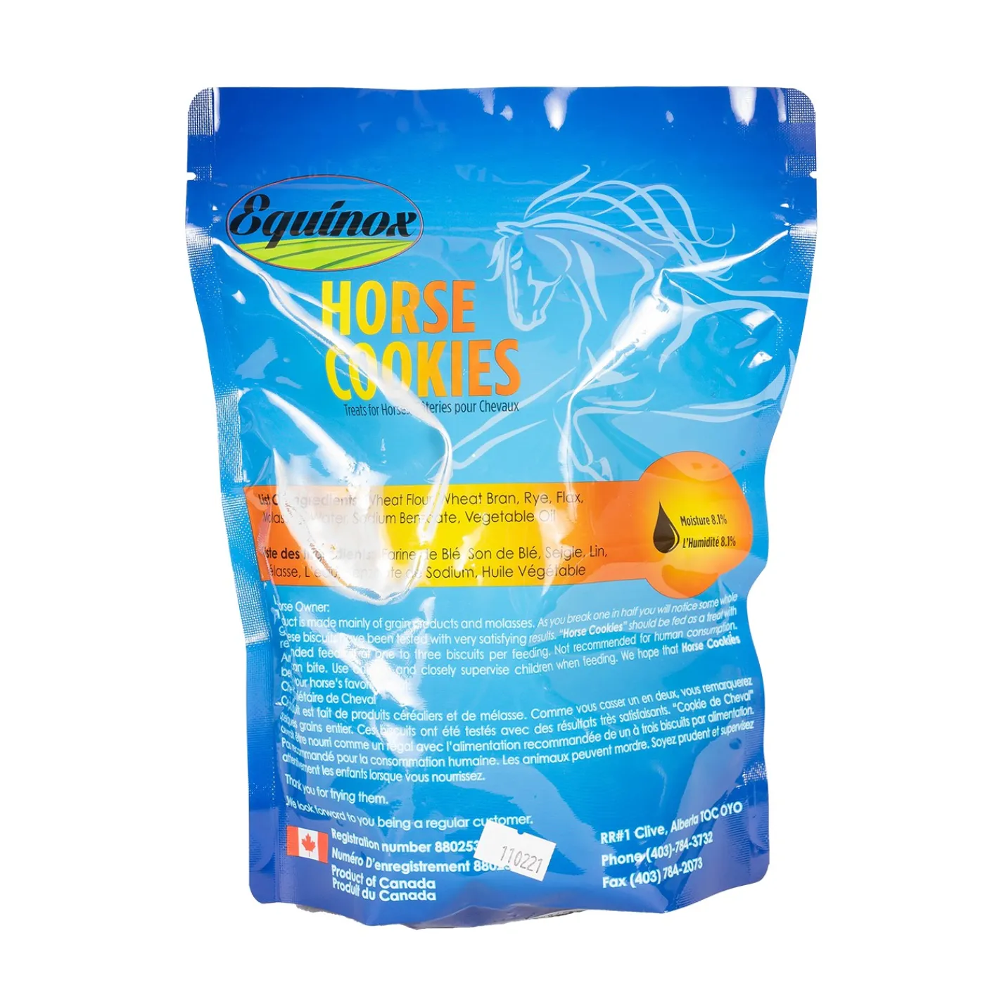 Equinox Horse Cookies are made from crushed grains, naturally sweet molasses and other healthy & delicious ingredients. These scrumptious horse treats come in easy-to-feed oval cookies that don’t fall apart and keep well when stored. Each cookie contains whole flax seeds to help give your horse a shiny coat. These biscuits will have your horse begging for more! Packaged in a convenient resealable bag.