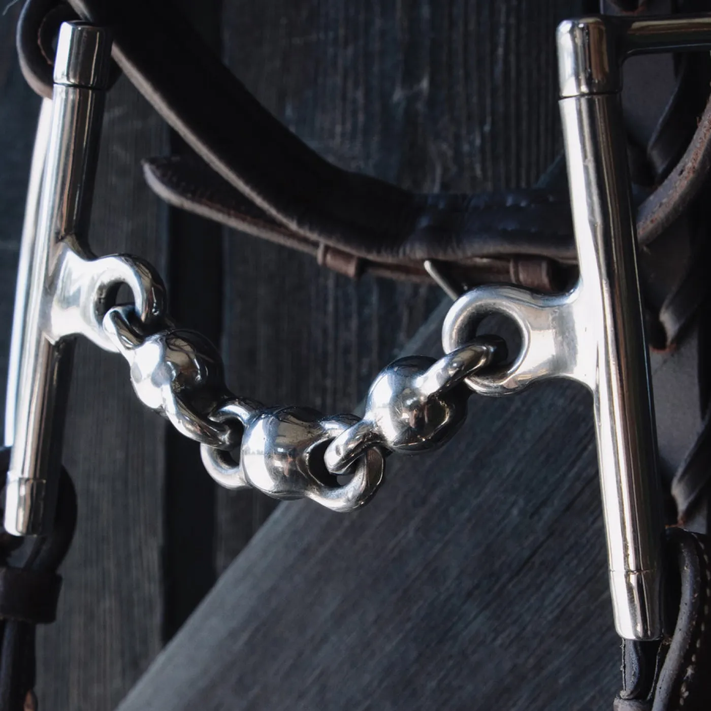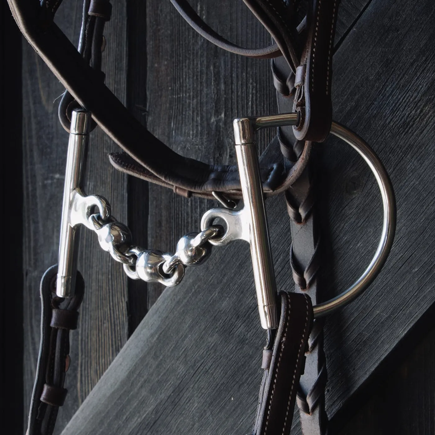 The EvoEq Hunter Dee Bit features a dee ring design which helps to protect the horse’s lips from being pinched and helps protect against the bit being pulled through the horse’s mouth. Complete with a Waterford mouthpiece that features a ball and chain appearance and moulds around the horse’s mouth, providing good control for the rider as it is difficult for the horse to lean or take hold.