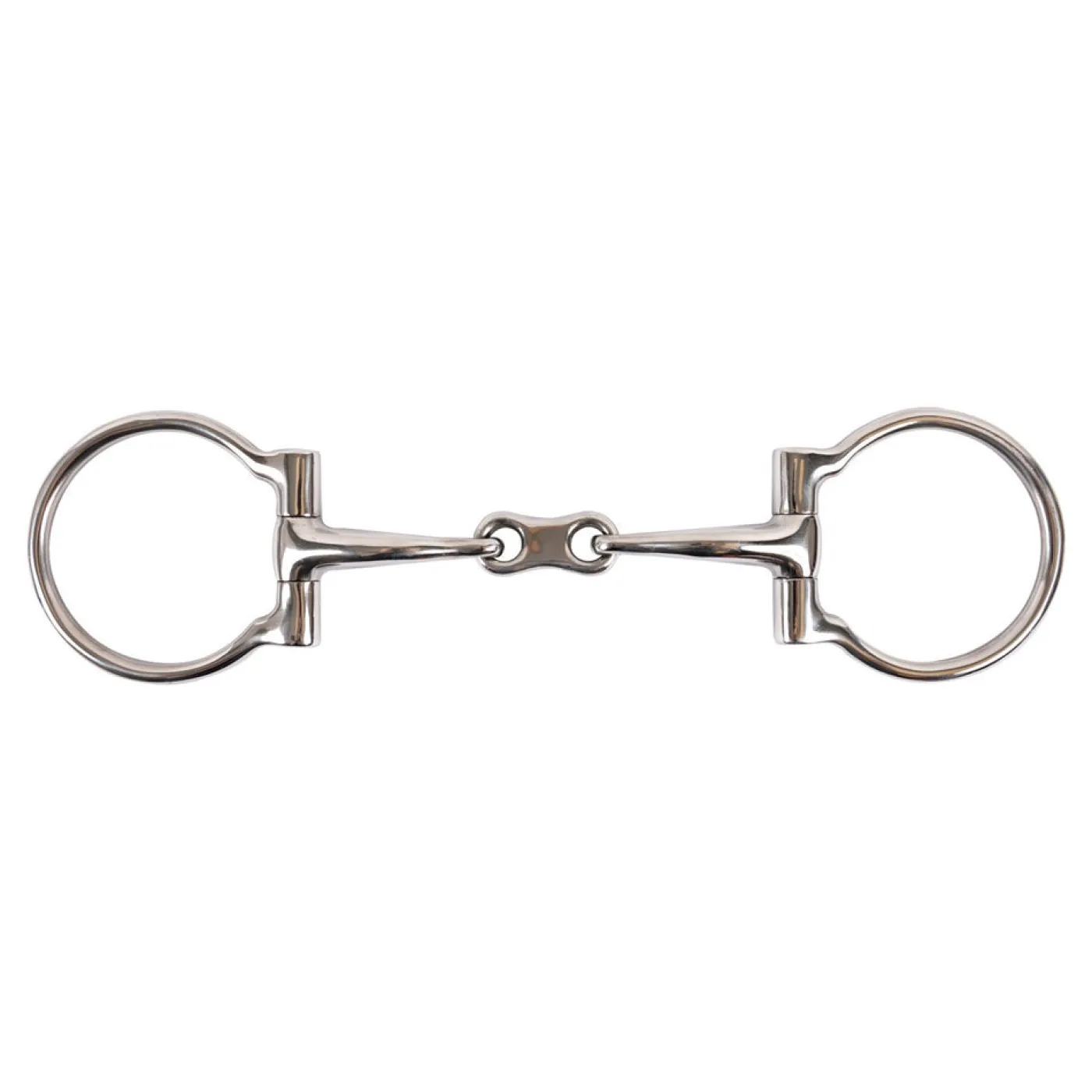 Three piece snaffle bit with stainless steel offset dee rings creates mild pressure on the horse’s tongue.
