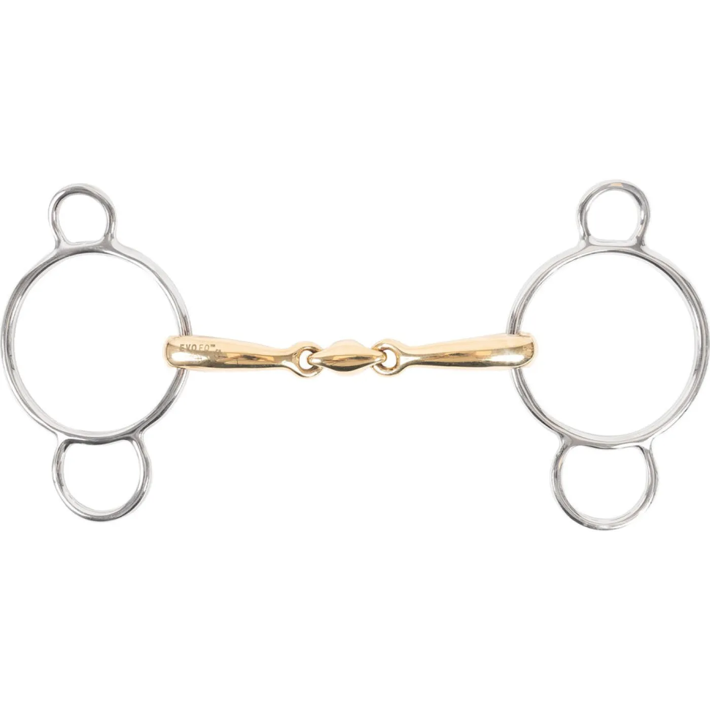 The EvoEq Universal Curved Mouth Double Jointed Bit W/ Lozenge is a two-ring snaffle bit. This bit features a double jointed, copper alloy mouthpiece with a center lozenge and stainless steel cheeks. The curved mouthpiece creates tongue relief. Mouth piece curve height measures 11 mm. Mouthpiece thickness measures 14 mm. Cheekpiece ring measures 70 mm in diameter.