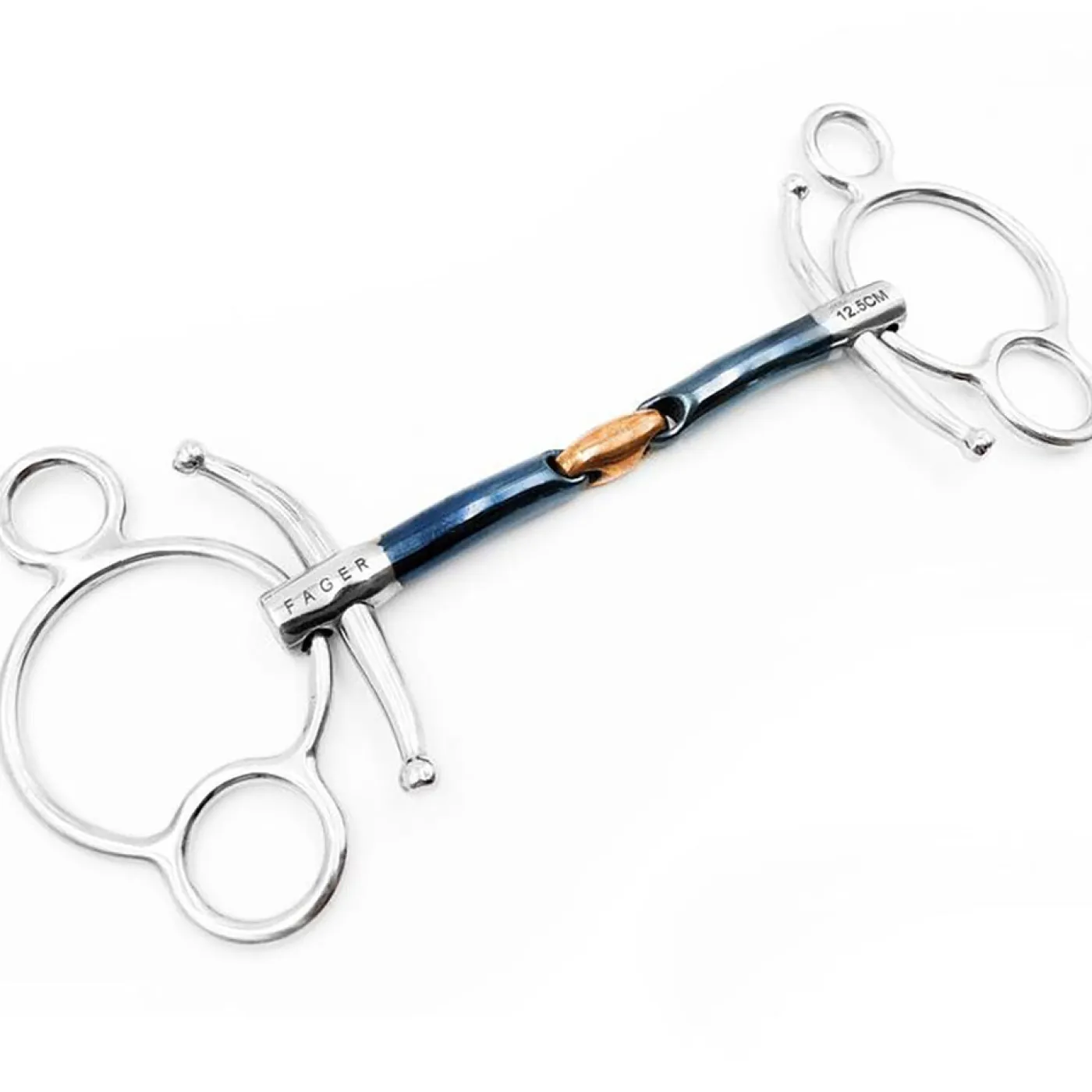 The Fager John Sweet Iron Double-Jointed Baby Fulmer Universal Bit is 100% smooth, all the way around the joints and will not interfere or push on the palate or lay on top of the bars. The John shapes naturally around the tongue and is perfect for horse’s who easily get wounds, and the straight and thin design helps your aids to be smooth and precise. The John features Fager’s patented Baby Fulmer cheeks that are curved to avoid pressure on the horse’s face and to help keep the mouthpiece stable. Suitable for horse’s who pull on the bit or who easily get wounds/pinched in the mouth.