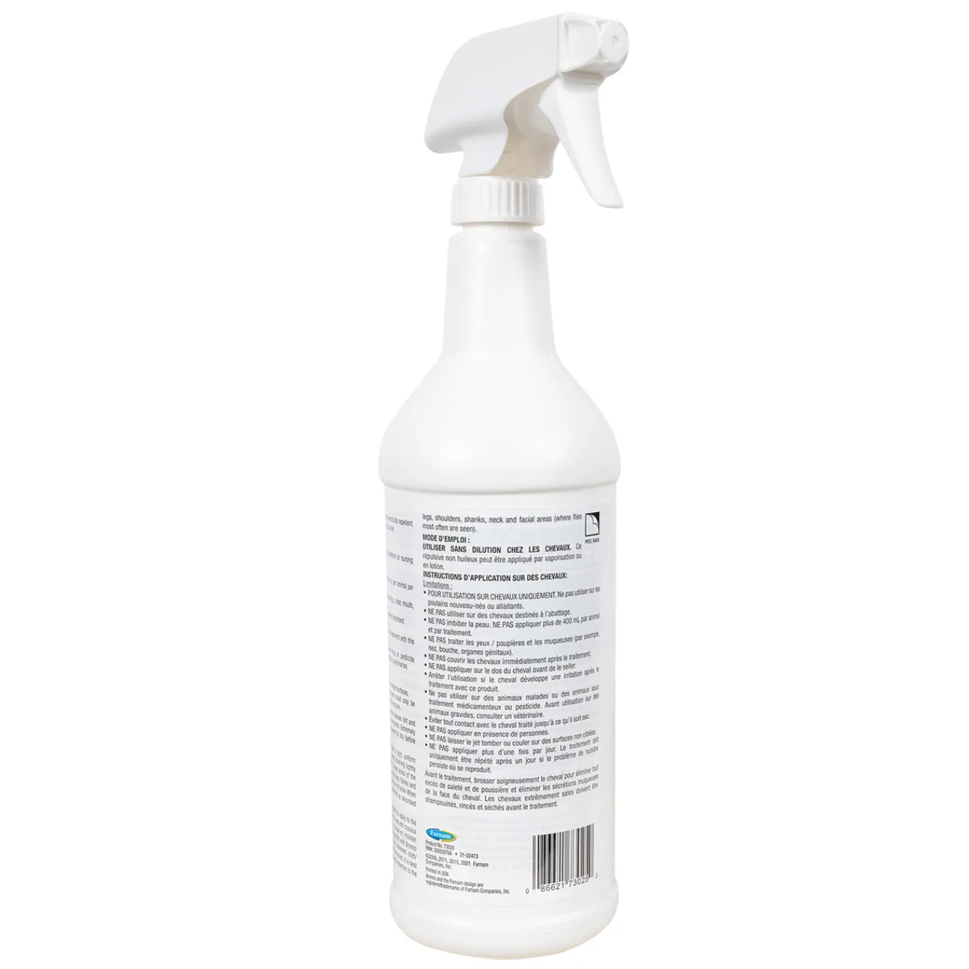 Bronco Fly Spray is a staple for every stable. The water based, ready-to-use formula is economical and effective with a pleasant citronella scent. Repels and kills house flies, face flies, horn flies, stable flies, deer flies, horse flies, gnats, ticks, fleas, chiggers and lice. Repels mosquitoes. 946 mL.
