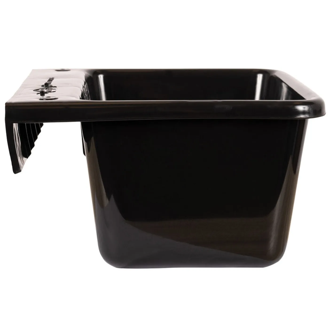 This bucket is a Foralloy Rubber Modified polymer construction. Rounded corners allow for equine safety and easier feeding. Integral mounting frame with mounting holes for permanent installation allow for easy use anywhere around the barn. Capacity markings let you monitor feed intake. This bucket is UV stabilized, easy to clean, and resists cold weather cracking.
