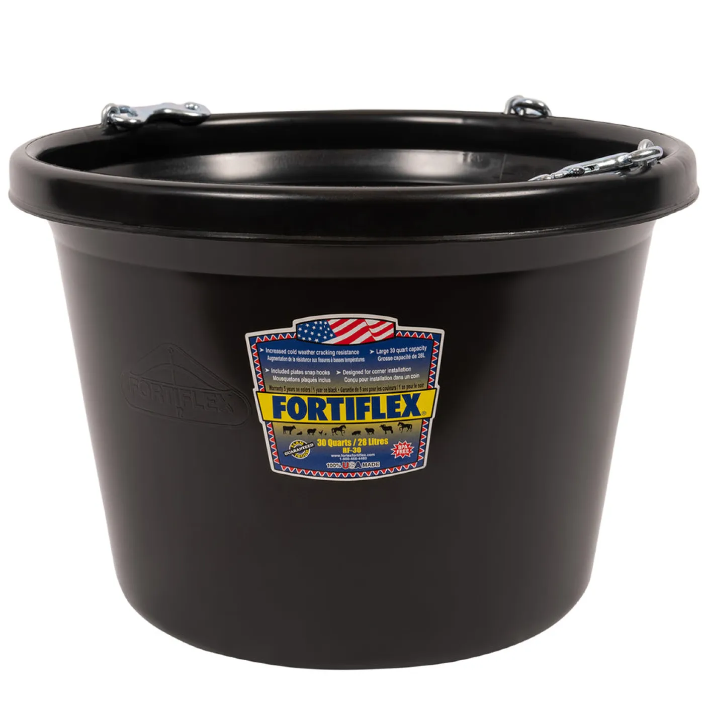 Make sure your horse enjoys every meal time with the Fortiflex Round Feeder. This bucket has a 30 quart capacity and is supplied with steel snap hooks for sturdy installation. Built-in UV protection ensures this bucket will not fade. Designed to resist cracking in cold weather. Compatible with the Fortiflex Feed Saver Ring (sold separately).