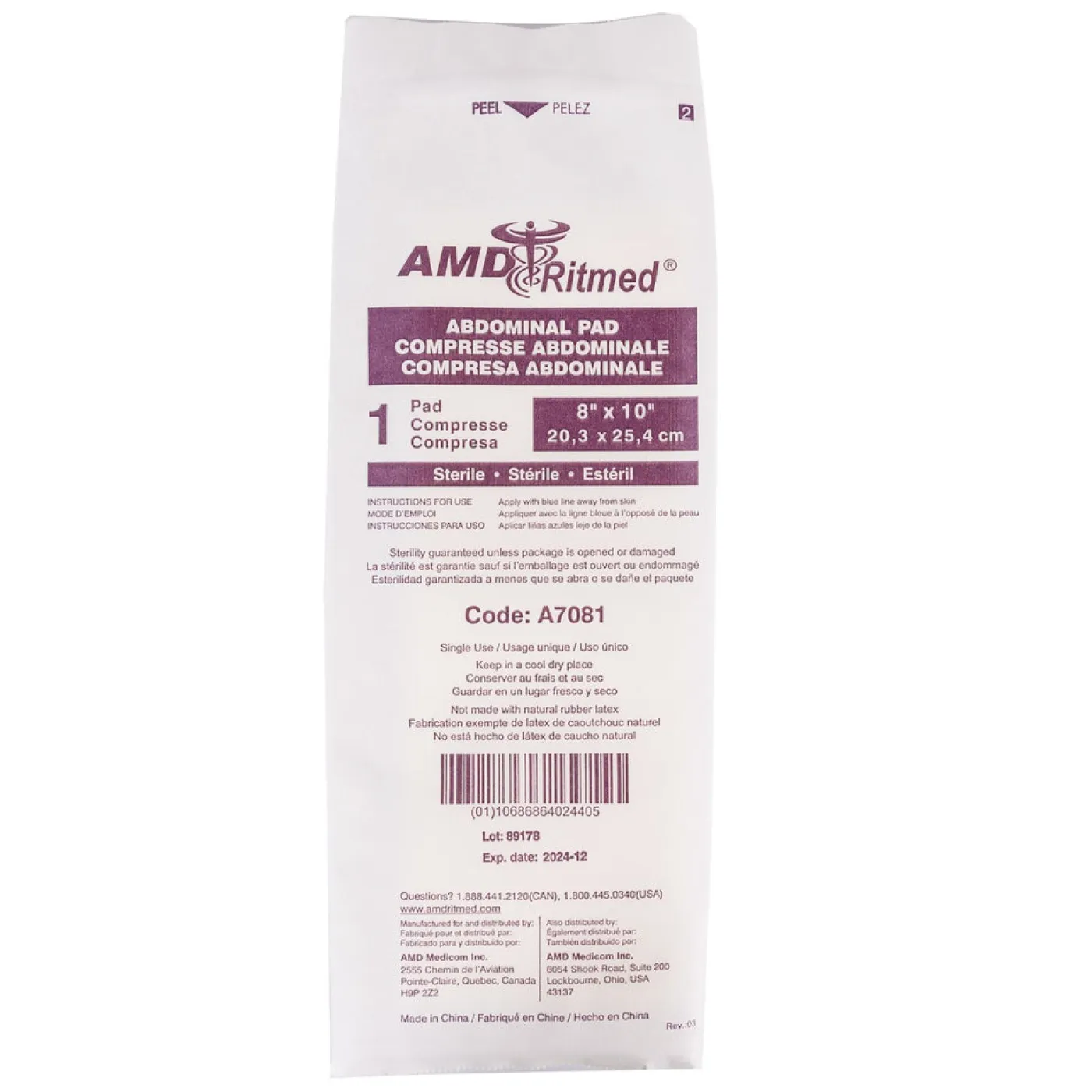 Useful for effective covering of cuts, scrapes, and burns, ABD pads don’t stick to the wound so they are easy to remove while also providing a cushion shield. Primary or secondary dressing sealed on all 4 sides. Each pad measures 8″ x 10″. Sterile. Sold individually.