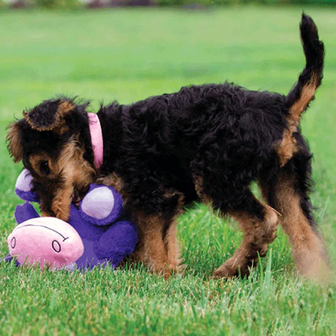 - 3-in-1 Chatterbox squeaker that squeaks, crunches, and chuckles!