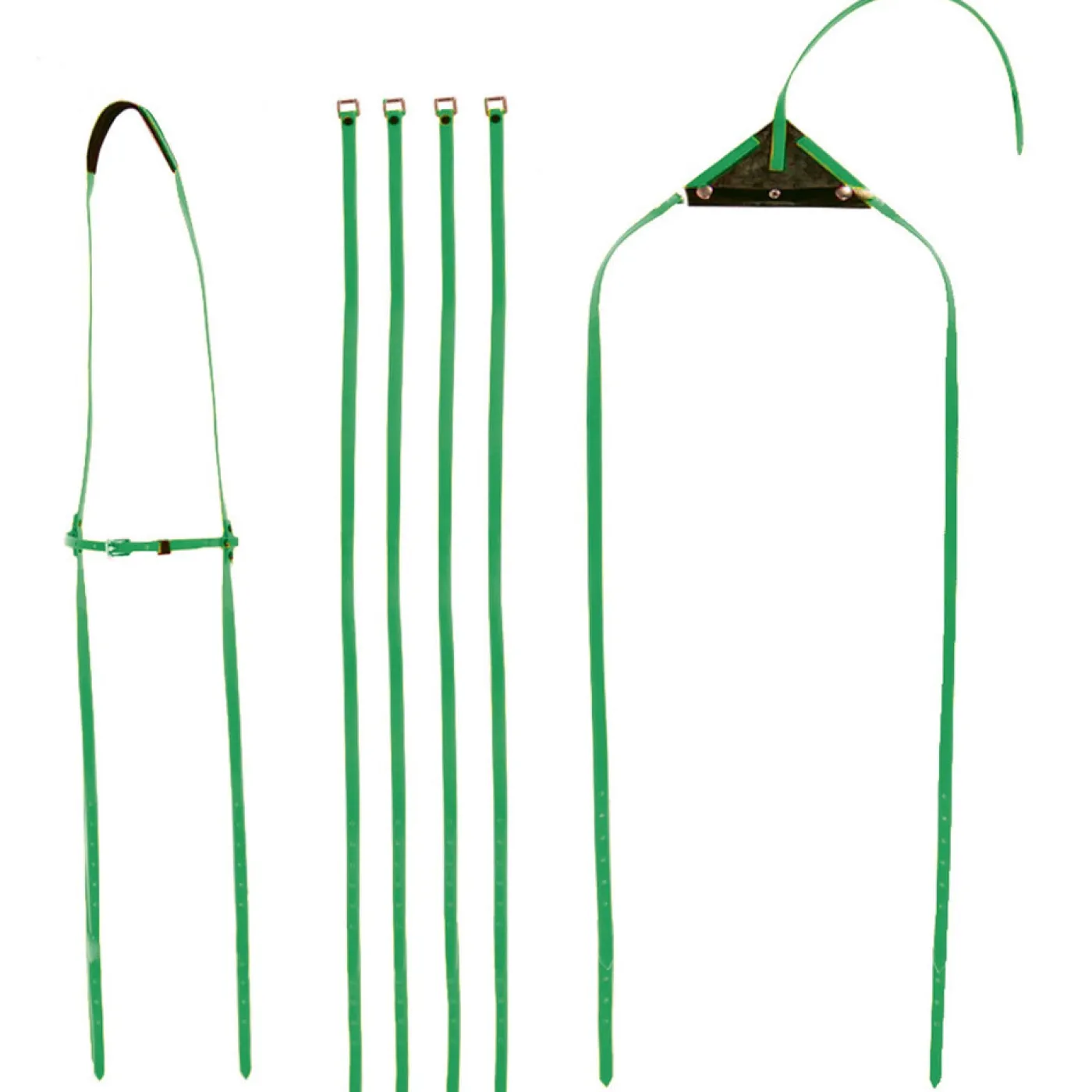 Hopple Hangers made from 1/2 inch high quality, extremely durable synthetic webbing. Includes one front portion, four center straps and one spreader strap. Sold as a set. One size fits most.