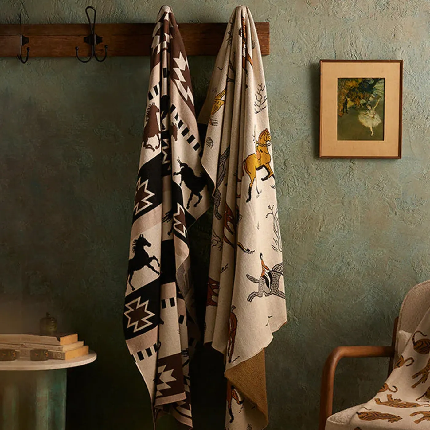 Riders of all kinds are jubilantly depicted in this lovely throw. It’s will be a charming addition to any space. Its knitted cotton construction will keep you and yours warm and snug anytime!