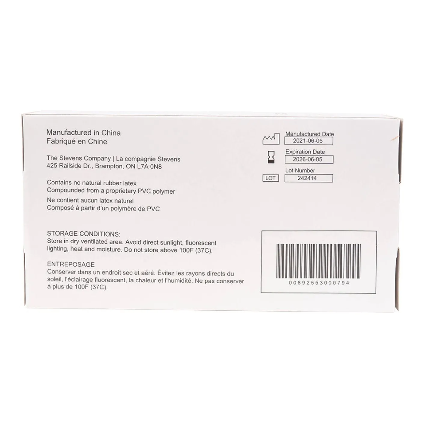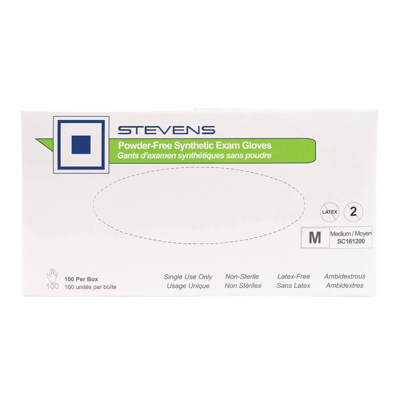Vinyl medical examination gloves. Single use and ambidextrous for wear on either hand. Latex and powder free. Non-sterile. Box of 100.