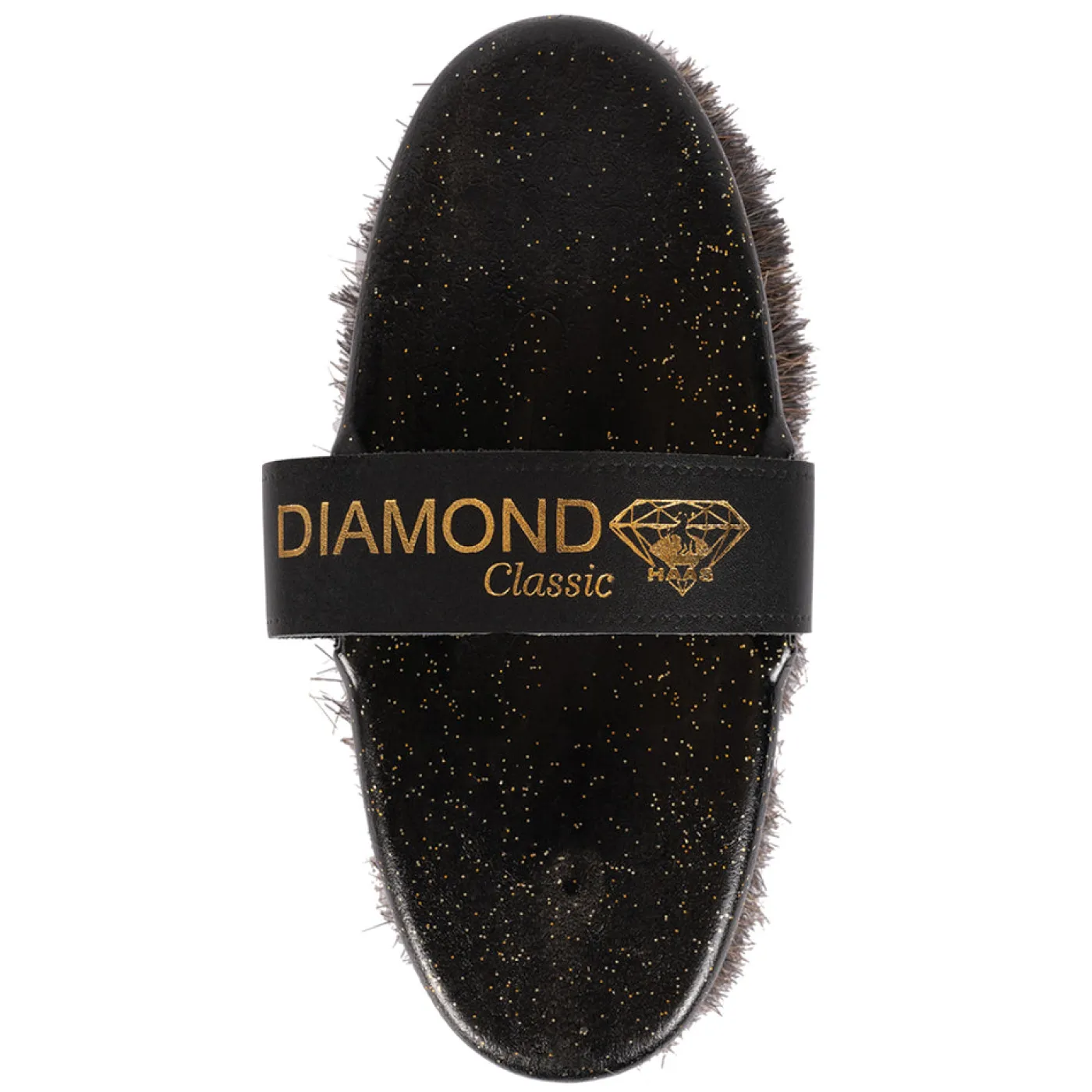 The Haas Diamond Classic Brush offers a classic grooming brush with a diamond look. Constructed with a long outer bristle ring, with shorter inner bristles to cover the entire coat. The horsehair mixture helps to shine the coat. Complete with a leather strap and sparkle resin back.
