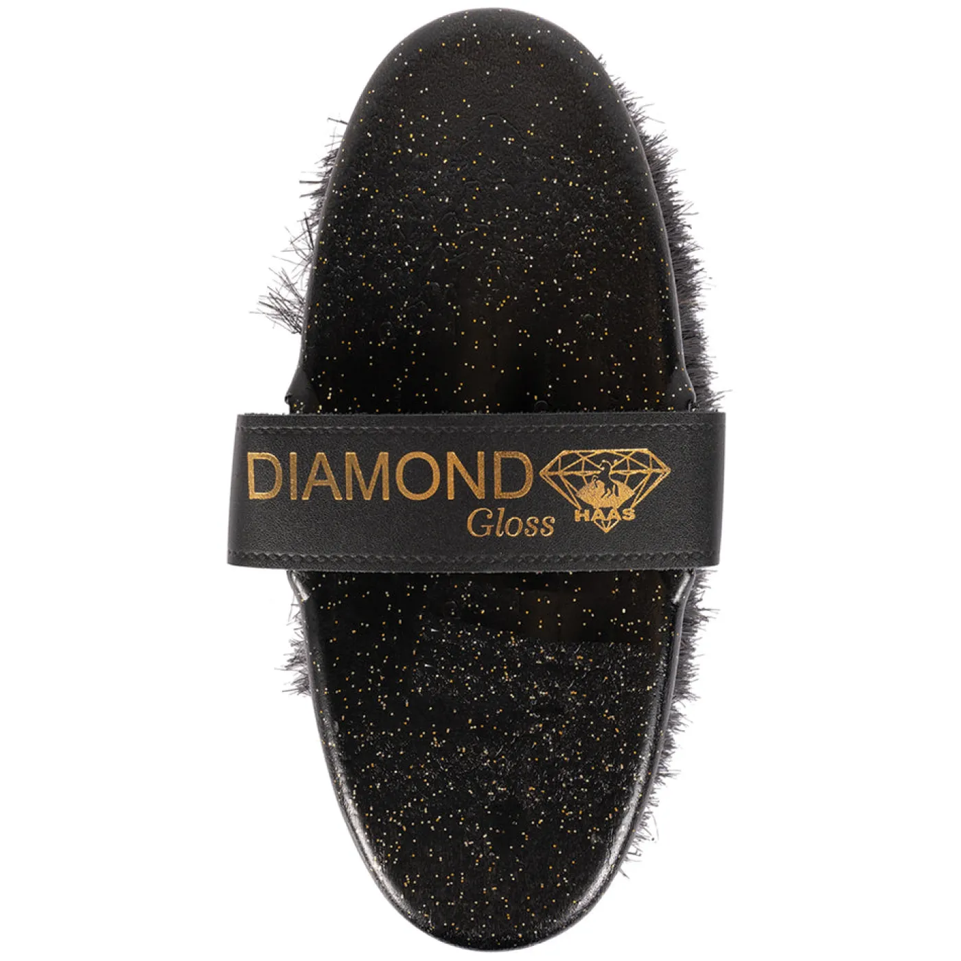 The Haas Diamond Gloss Brush offers an elegant design made from dense, soft and natural horse hair bristles. Complete with a leather wrist strap and glitter body design.