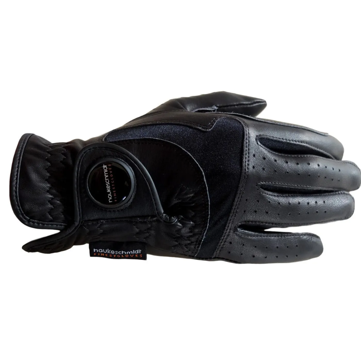 The Haukeschmidt Arabella Leather Gloves offer an elegant option for the competition ring with its lightweight, fine leather construction. Features elastic Lycra inserts over the knuckles, reinforced stress points, and an elasticated wrist with a hook and loop fastener.