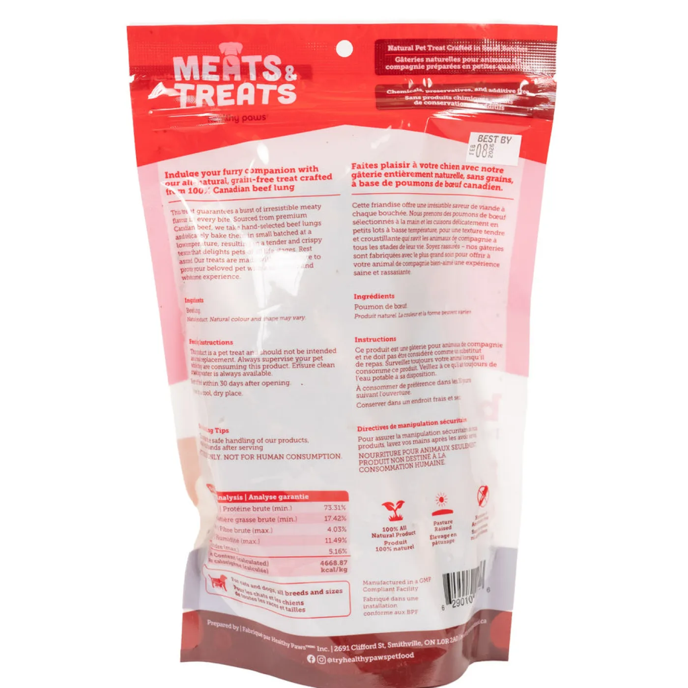 Crafted from 100% Canadian beef lung, and sourced from premium Canadian beef. We take hand-selected beef lungs and delicately dehydrate them in small batches at a low temperature, resulting in a tender and crispy texture that delights dogs of all life stages.