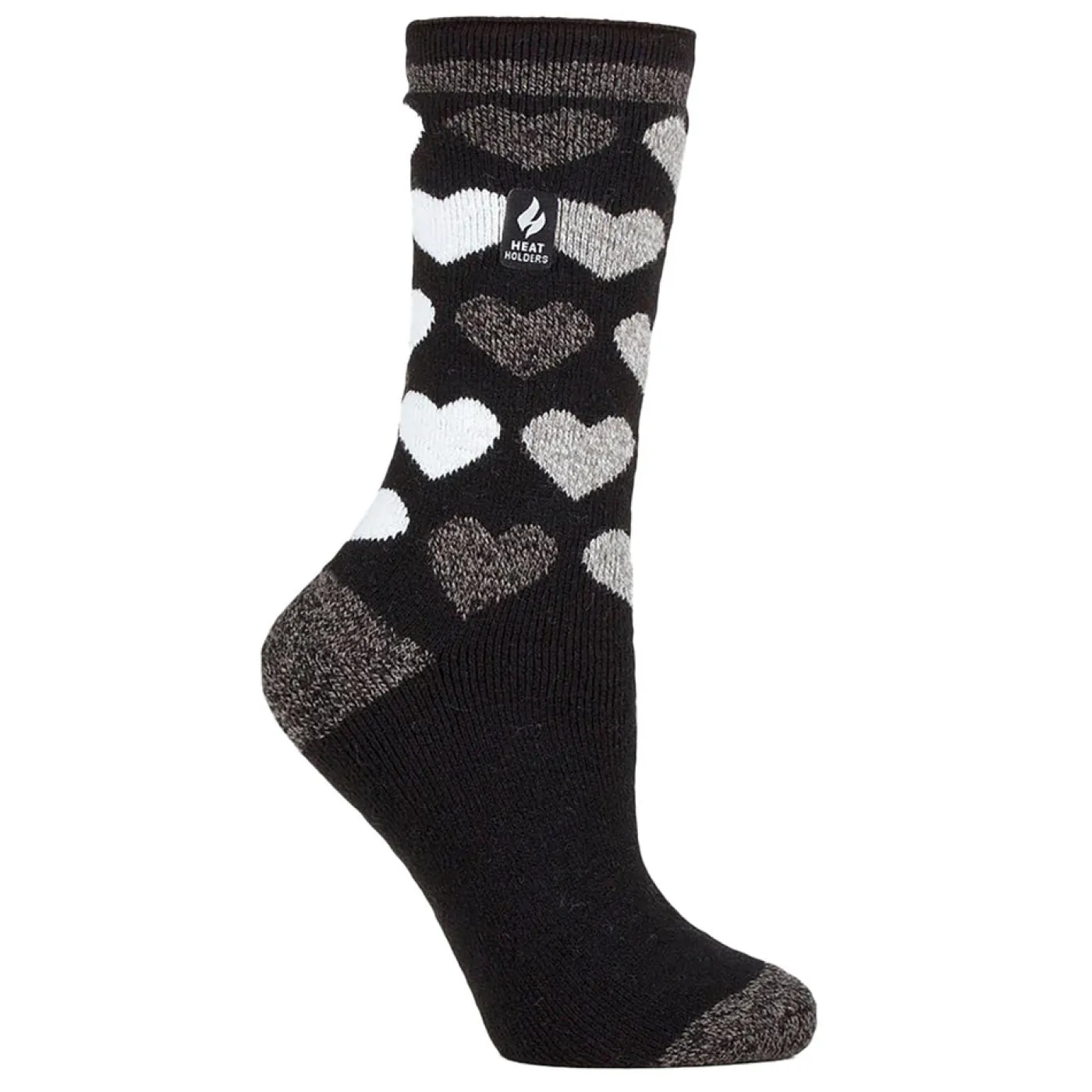 Keep your feet warm on the coldest of days and pull on this pair of heart pattern, medium thickness, crew socks. Heat Holders® are made from a specially developed heavy bulk yarn which has extreme thermal qualities. With medium pile cushioning, these thermal socks will help keep feet fully comfortable and supported. The inside of each sock has been intensively brushed, such that they not only feel sensationally soft but also trap warm air close to the skin keeping your feet warmer for longer.