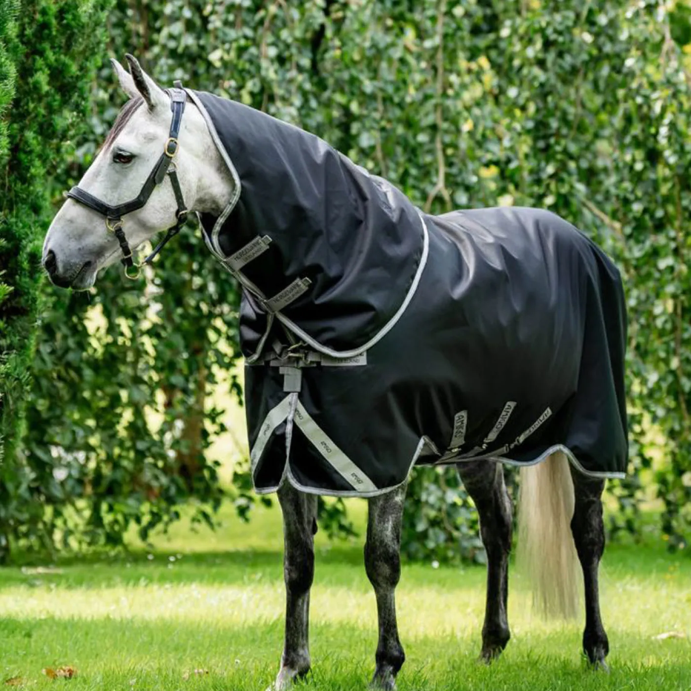 This heavyweight turnout is made with a durable and waterproof 1200D polyester outer, to provide breathable protection. Inside, the 210T shine-enhancing polyester lining ensures a smooth feel against your horse’s coat, while 400 g of fibrefill offers superior warmth for those cold days. The anti-static, anti-bacterial lining enhances both the comfort and hygiene of the blanket. The combination of a detachable hood, a Surefit neck design, a V-front closure system, and leg arches allow for freedom of movement. Three crossed surcingles and a wipe-clean PVC tail cord provide a secure, adjustable fit for added stability. Complete with reflective strips for enhanced visibility, a waterproof tail flap for extra coverage, and leg strap compatibility for added security. Compatible with the range of Horseware liners.