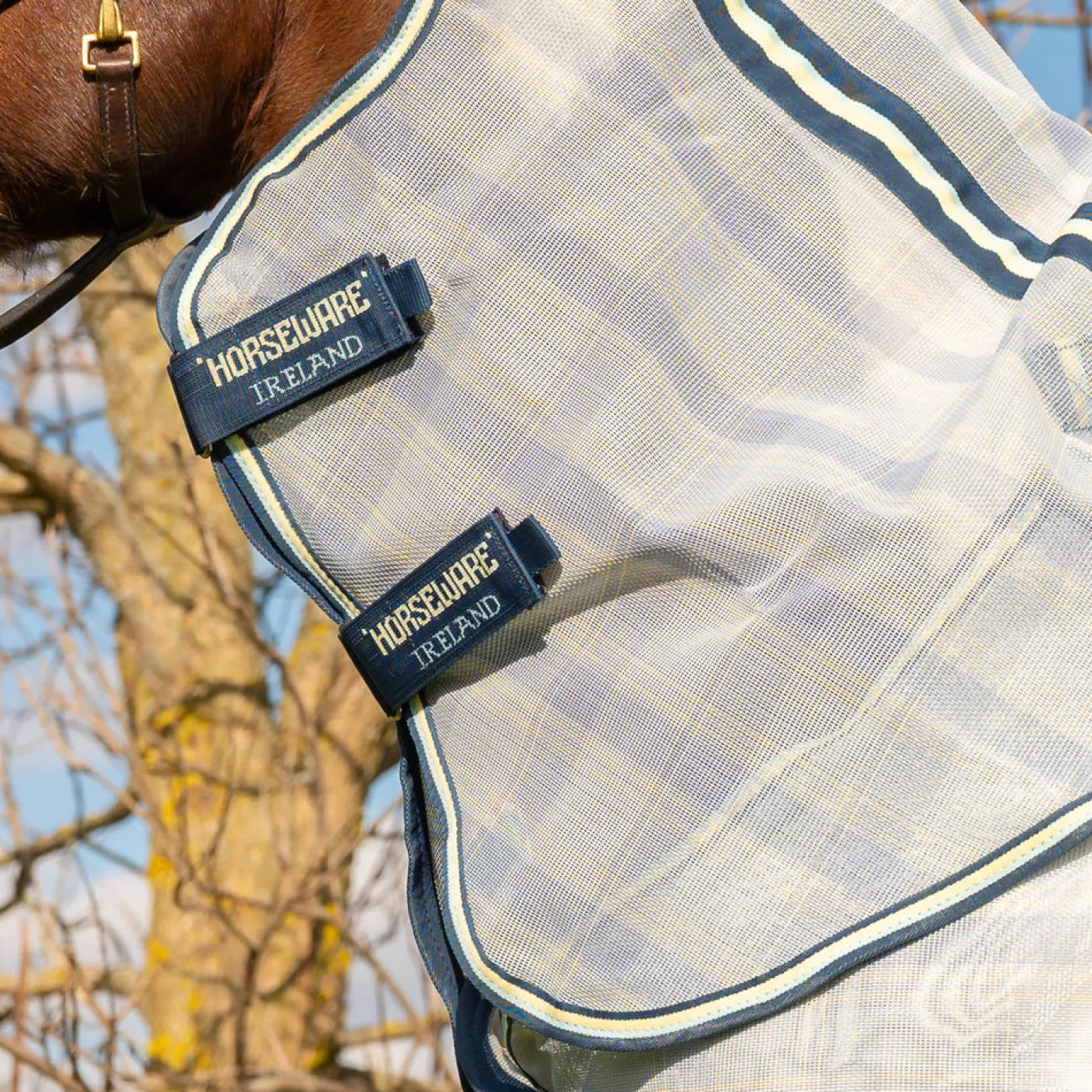Great for keeping your horse protected from insects and UV in a breathable, and durable woven Polyester mesh. Provides maximum coverage with an extra large tail flap and a detachable hood. Complete with classic straight front closures and cross surcingles for a secure fit.