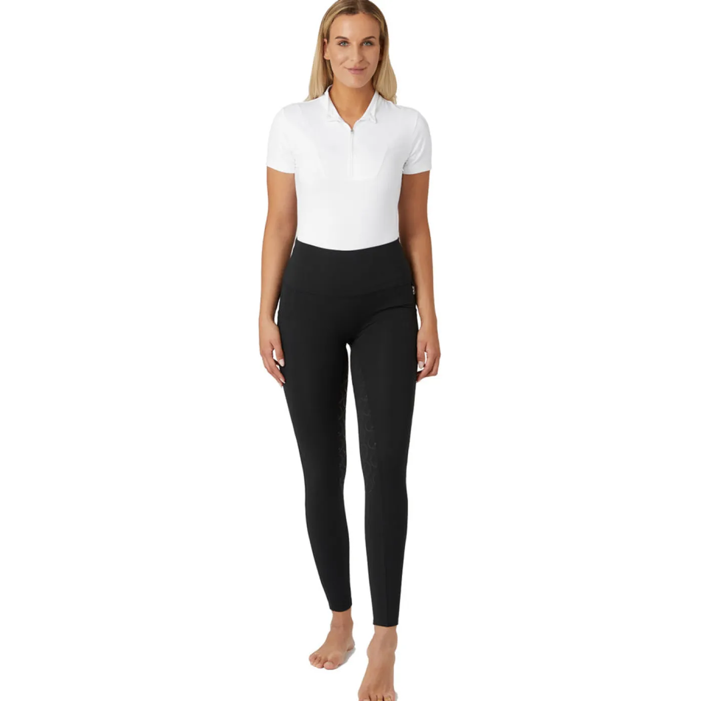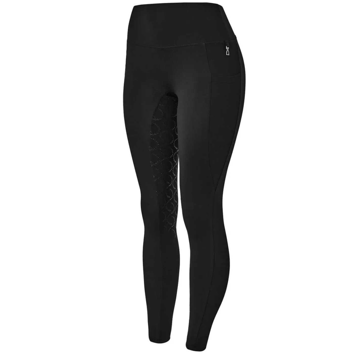 The Horze Gillian Breech is constructed from compression fabric for all day comfort in the saddle. Features a high-waist design for a flattering fit with two thigh pockets. Complete with a silicone full seat for added grip.