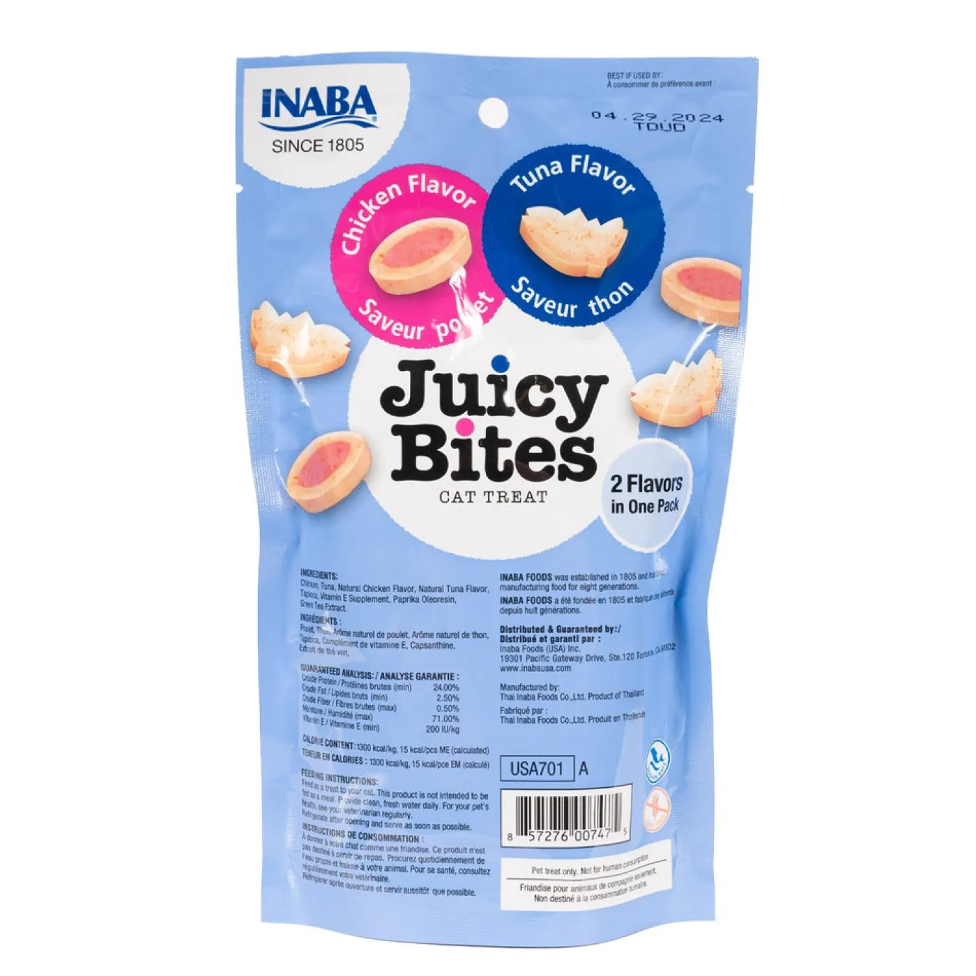 Inaba Juicy Bites offer cute shaped snacks with chicken and tuna, allowing your feline friend to enjoy two flavours at once. Made without grains, preservatives, or artificial colours. These soft, moist treats are perfect for hiding pills!